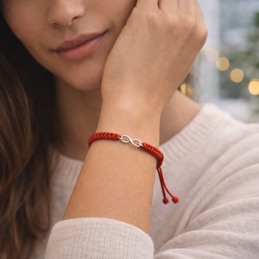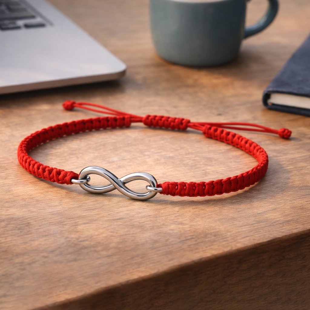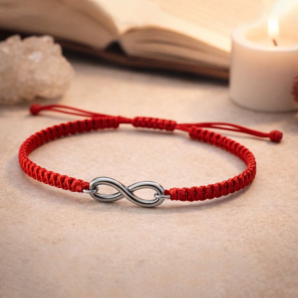 Červená šnúrka je v ezoterike dlhodobo považovaná za symbol ochrany pred negatívnou energiou, zároveň aktivuje silu, odvahu a schopnosť konať. V kombinácii so symbolom nekonečna vytvára talizman pre peniaze, šťastie a dlhodobú prosperitu.