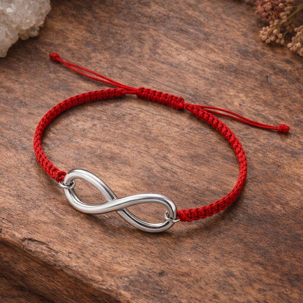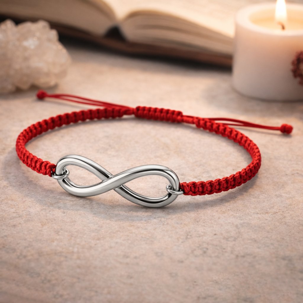 Červená šnúrka je v ezoterike považovaná za jeden z najsilnejších ochranných symbolov. Aktivuje energiu, podporuje odvahu a chráni pred negatívnymi vplyvmi. V spojení so symbolom nekonečna vytvára ochranný náramok pre peniaze, šťastie a stabilitu, ktorý pripomína, že hojnosť je proces, nie náhoda.