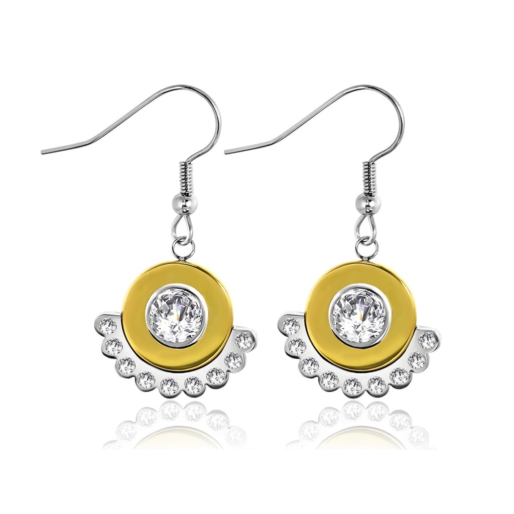 Dámske visiace náušnice z chirurgickej ocele v strieborno-zlatej farbe zdobené čírimi očkami - Lina