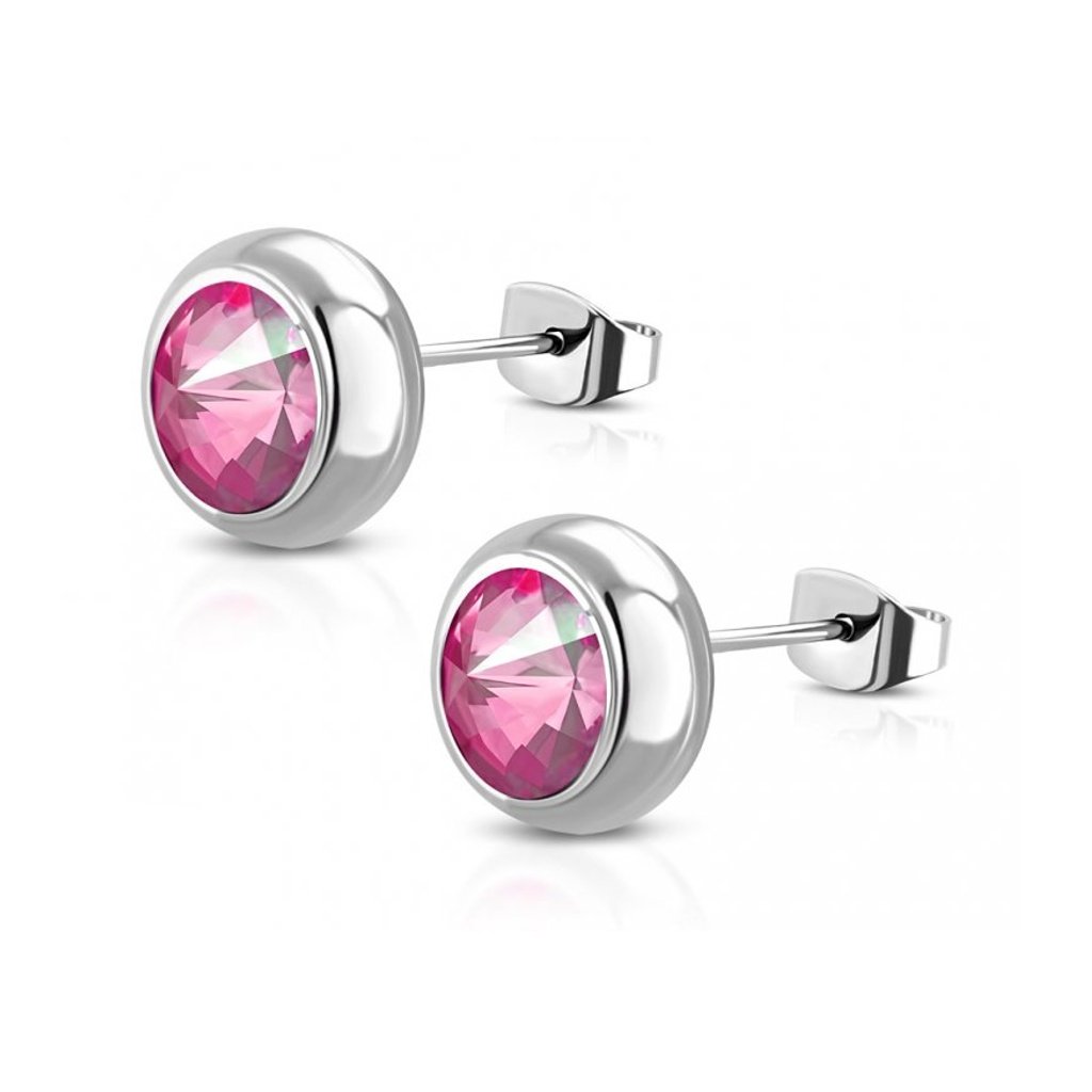 Náušnice puzetové z chirurgickej ocele s ružovým očkom 6 mm - Rozzie + darčeková krabička zadarmo