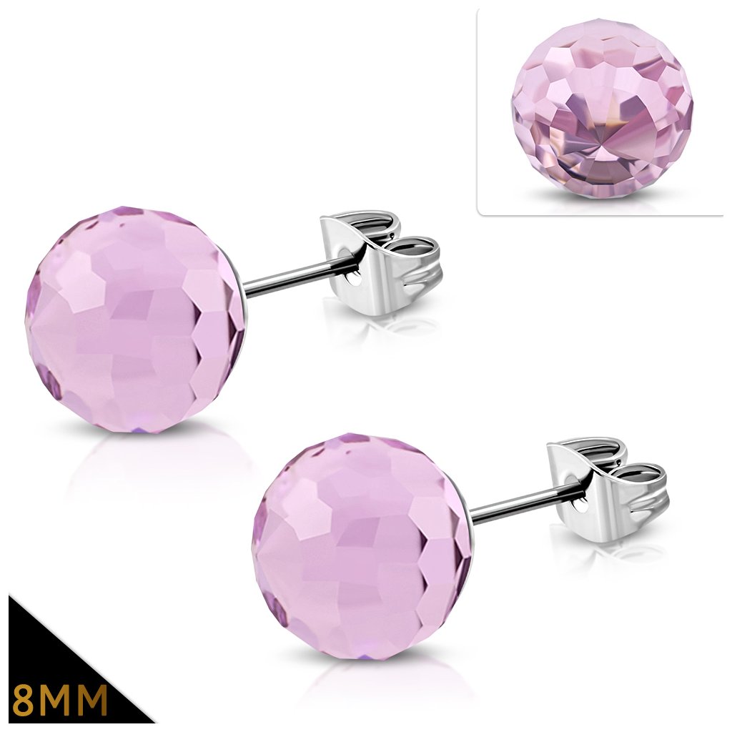 Náušnice z chirurgickej ocele v ružovej farbe s fazetovým výbrusom - 8 mm