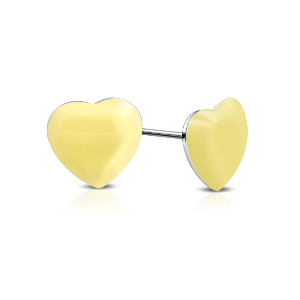 Krásne náušnice jemnej krémovej farby vyrobené z chirurgickej ocele. Náušnice sú v tvare srdiečok a majú vysoký lesk. Sú skvelým doplnkom k letnému outfitu, ktorý krásne osviežia a dajú sa skvele skombinovať aj s inými šperkami. Náušnice majú obľúbené puzetové zapínanie. Sú vyrobené z kvalitnej chirurgickej ocele, ktorá je veľmi pevná a odolná. Je tiež antialergická, takže sa nemusíte báť ich nosiť aj každý deň. Chirurgická oceľ si nevyžaduje žiadnu špeciálnu starostlivosť.