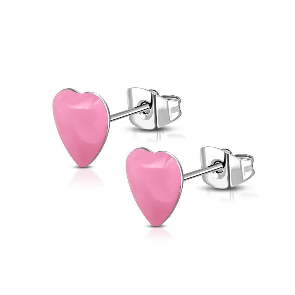 Jemné náušnice peknej svetloružovej farby z chirurgickej ocele. Náušnice majú tvar malých srdiečok s vysokým leskom. Svojou cukríkovo-ružovou farbou sú vhodné aj pre malé dámy ako skvelý módny doplnok. Náušnice sa dajú ľahko skombinovať s náramkom, alebo príveskom. Materiál náušníc je kvalitná chirurgická oceľ, ktorá nekoroduje a nečerná, a preto je vhodná na bežné každodenné nosenie. Náušnice majú zapínanie puzetového typu.