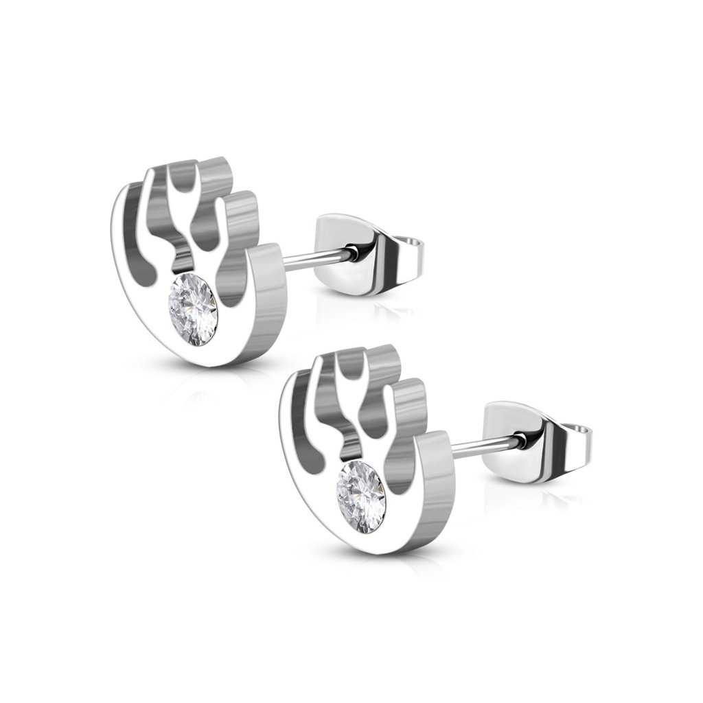 Náušnice v tvare plameňa s čírym očkom z chirurgickej ocele Flame