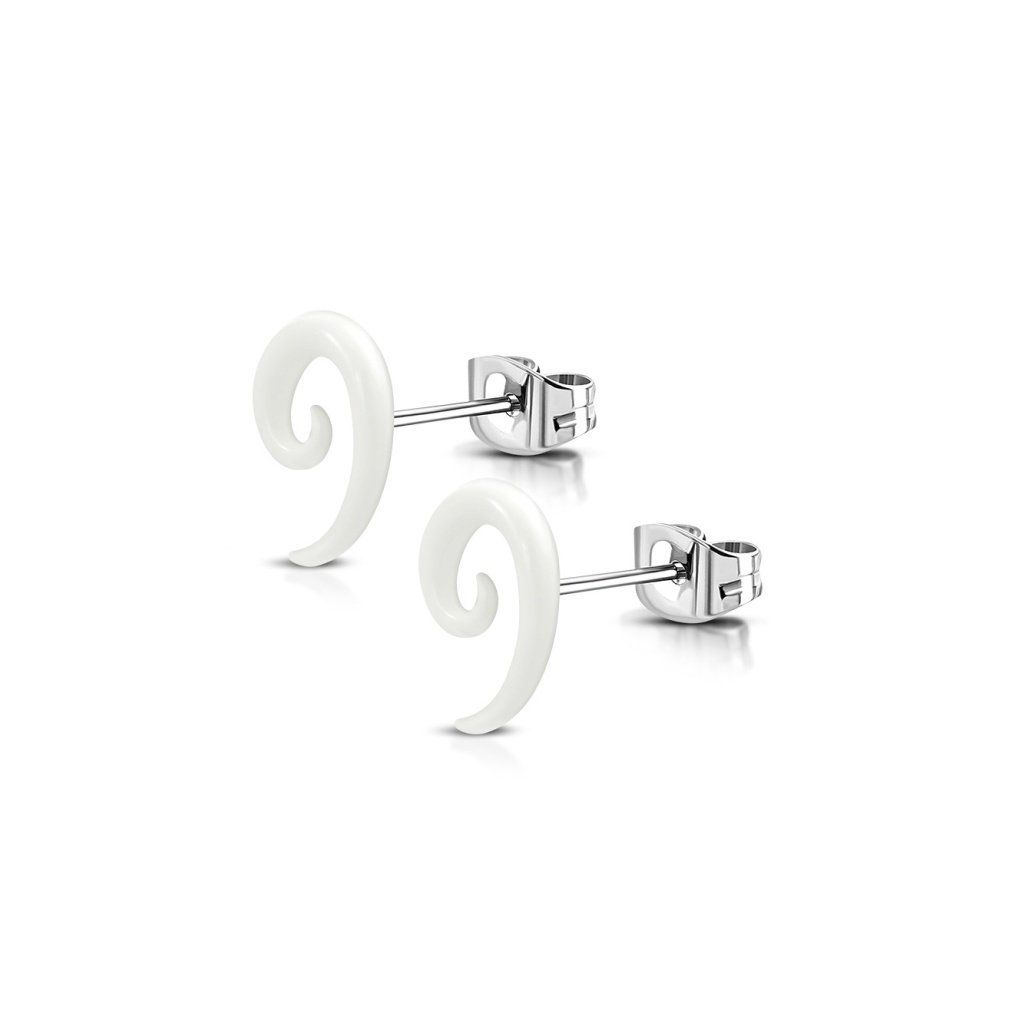 Náušnice z akrylu a chirurgickej ocele v tvare špirály v bielej farbe