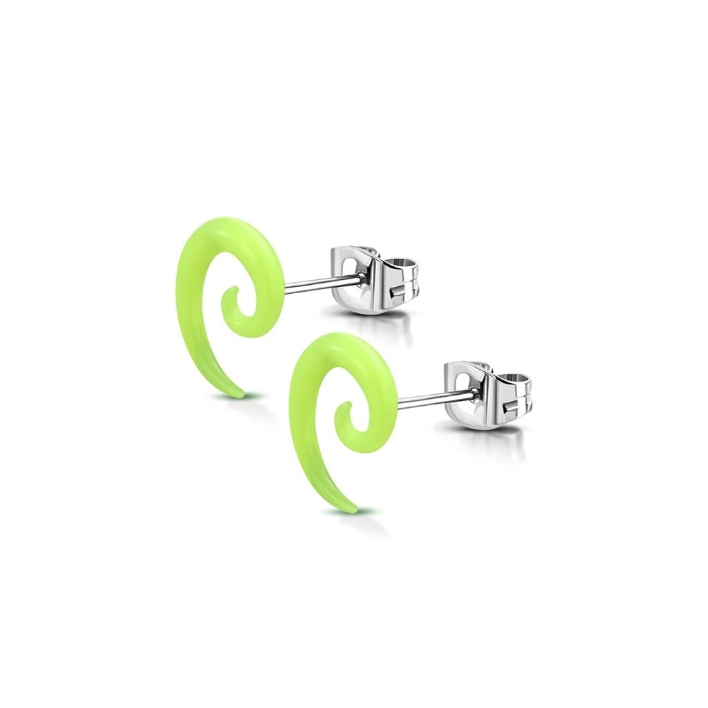 Náušnice z akrylu a chirurgickej ocele v tvare špirály v zeleno-žltej farbe