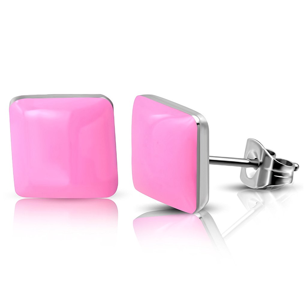 Náušnice z chirurgickej ocele štvorcové ružové + darčeková krabička zadarmo
