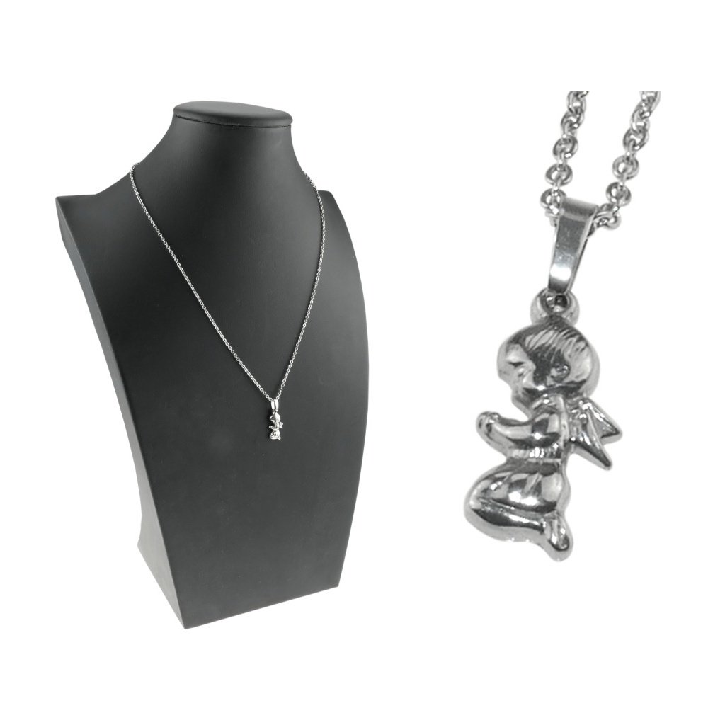 Retiazka s krásnym príveskom anjelik vyrobená z chirurgickej ocele. Prívesok, ktorý je vhodný aj ako detský šperk, je v tvare malého kľačiaceho anjelika. Svojou veľkosťou je ideálnym šperkom pre mladé slečny. Prívesky v tvare anjelika sú veľmi populárne, plnia aj ochrannú funkciu a majú náboženský význam. Materiál retiazky s prívesok je kvalitná chirurgická oceľ, ktorá je antialergická, čo pri šperkoch určite oceníte. Oceľové šperky nestrácajú svoj lesk ani tvar, a sú vhodné na bežné každodenné nosenie.