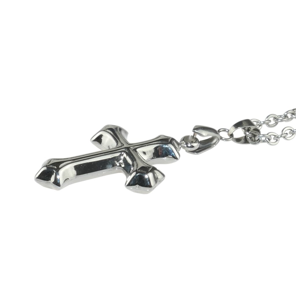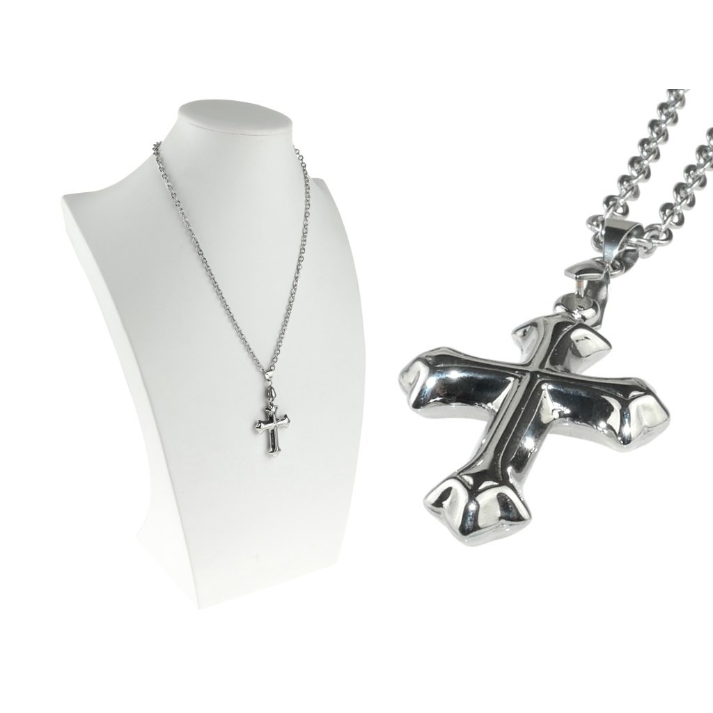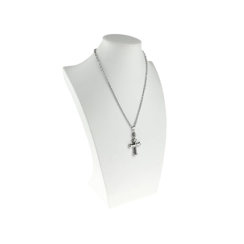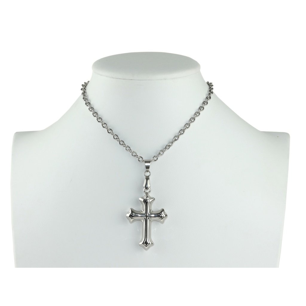 Krásny prívesok kríž s retiazkou vyrobený z chirurgickej ocele. Prívesky v tvare kríža sú stále veľmi populárne aj vďaka náboženskej hodnote, ktorú reprezentujú. Prívesok je v takzvanom 3D prevedení, má akurát veľkosť a preto je vhodný aj pre dámy aj pre pánov. Retiazka s príveskom sú vyrobené z kvalitnej chirurgickej ocele, ktorá nekorodujú, nečerná a udržiava si svoj tvar a lesk. Výhodou oceľových šperkov je, že sú antialergické a vhodné na bežné každodenné nosenie.