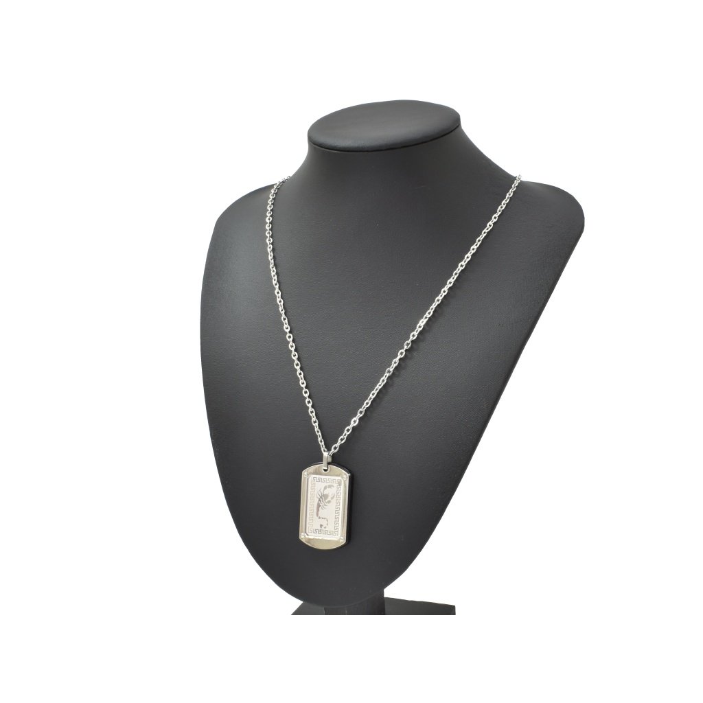 Retiazka s príveskom platnička je vyrobená z kvalitnej chirurgickej ocele ako aj samotná retiazka. Zapínanie retiazky je na karabínku. Dominantná strieborná farba prívesku je doplnená aj o čiernu farbu, ktorá s tou striebornou krásne kontrastuje. Gravírovaná plocha je lesklá, ako aj okraje platničky.Táto retiazka s príveskom Vám vydrží veľmi dlho nakoľko chirurgická oceľ nekoroduje a ani nemení farbu ako je to charakteristické pre striebro či šperky z bižutérie. Základná dĺžka retiazky je 47 cm, no máte možnosť si vybrať aj vlastnú dĺžku retiazky podľa Vašich osobitých potrieb.