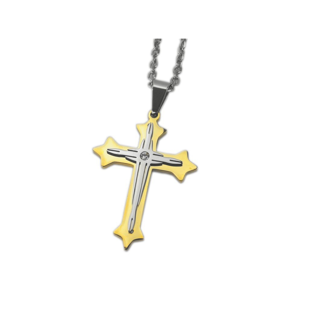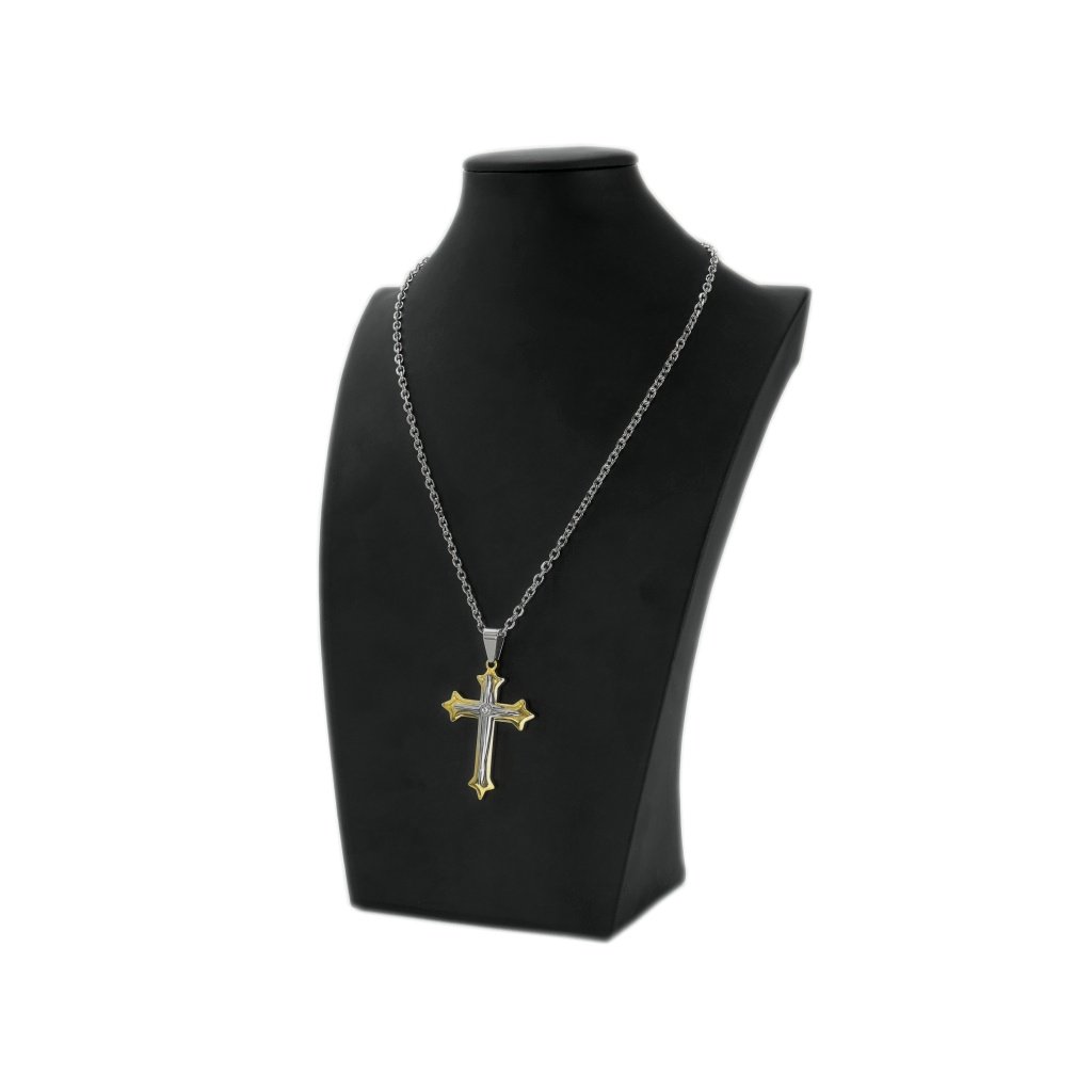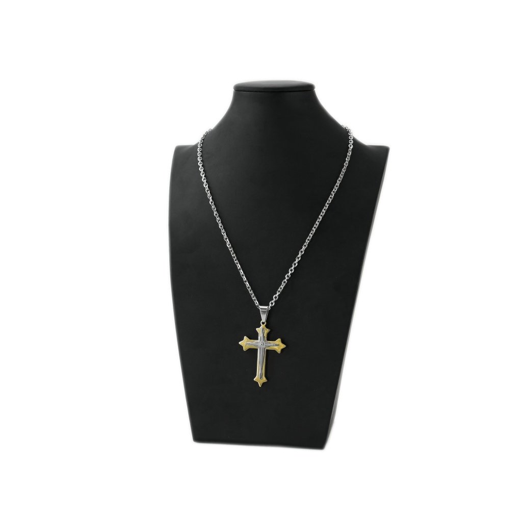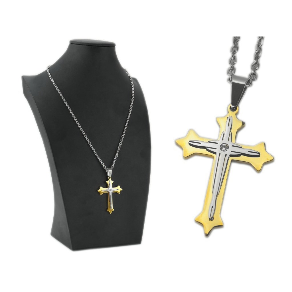Oceľová retiazka s veľkým príveskom kríž v zlato-striebornej kombinácií + pri tomto produkte si môžete zvoliť dĺžku retiazky