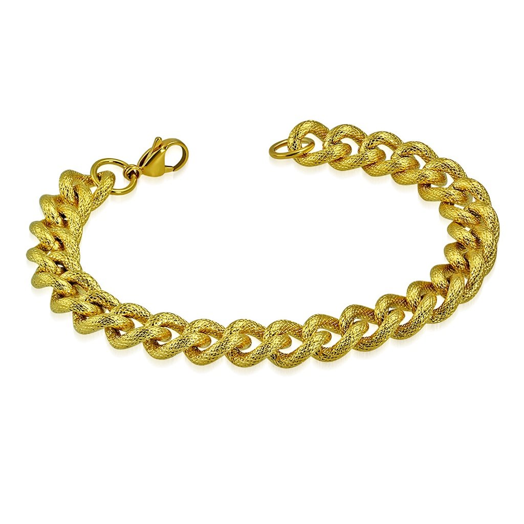 Náramok je celý vyrobený z chirurgickej ocele v zlatom prevedení. Vyhotovený je vo vzore pancier. Zapínanie náramku je na klasickú karabínku. Materiál chirurgická oceľ je hypoalergénna. Šperk si udrží svoj stály vzhľad veľmi dlho, nakoľko chirurgická oceľ, v porovnaní s inými materiálmi ako je striebro či bižutéria, nekoroduje a Vy sa tak môžete tešiť z dlhej životnosti Vášho šperku.