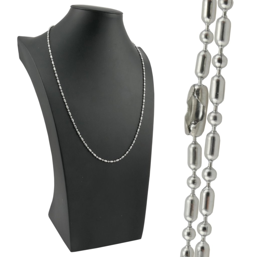 Retiazka v štýle military z chirurgickej ocele v striebornej farbe. Retiazka je v kombinácii guličky a valčeka. Military štýl je v súčasnej dobe veľmi obľúbený. Dá sa nosiť samostatne alebo s príveskom v tvare vojenskej platničky. Retiazka je vyrobená z kvalitnej chirurgickej ocele, ktorá je pevná a odolná, nečerná a udržiava si svoj lesk. Nepotrebuje žiadnu špeciálnu starostlivosť. Taktiež je to hypoalergénny materiál.