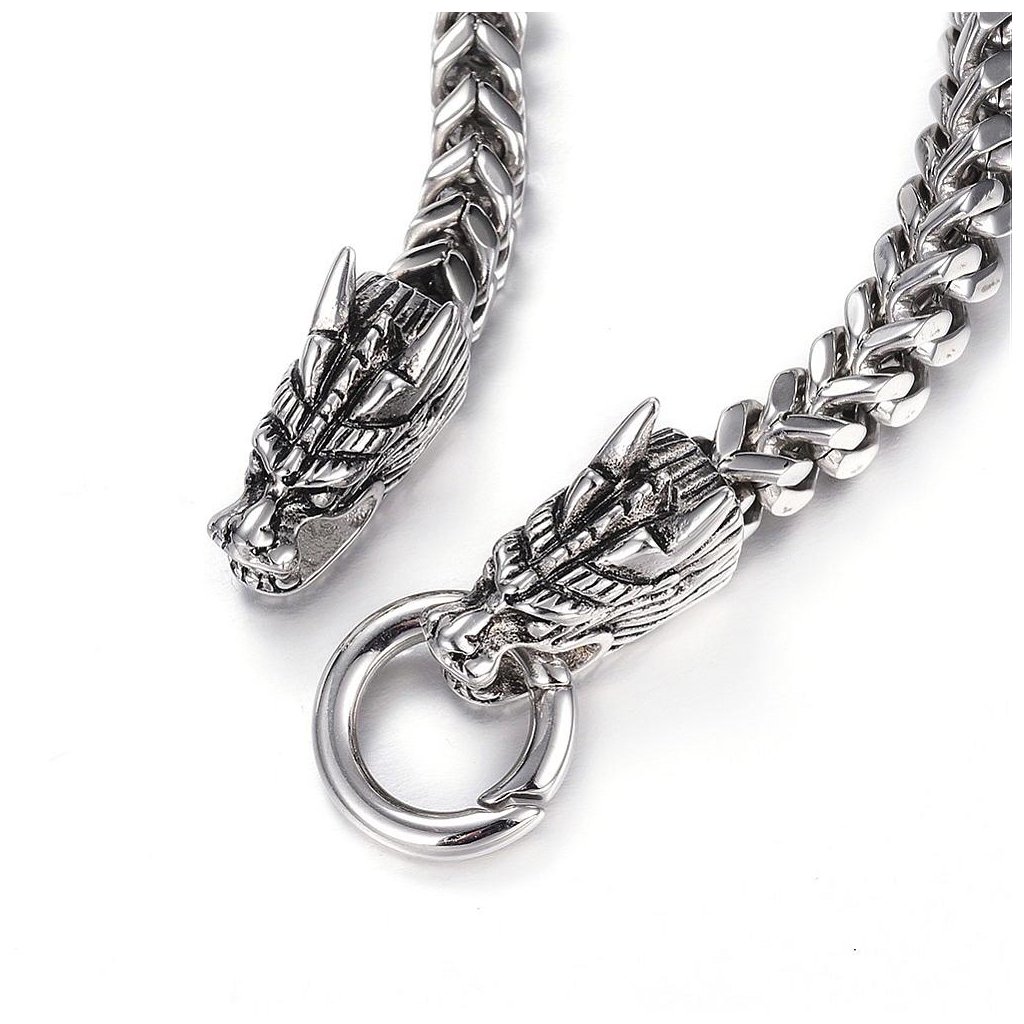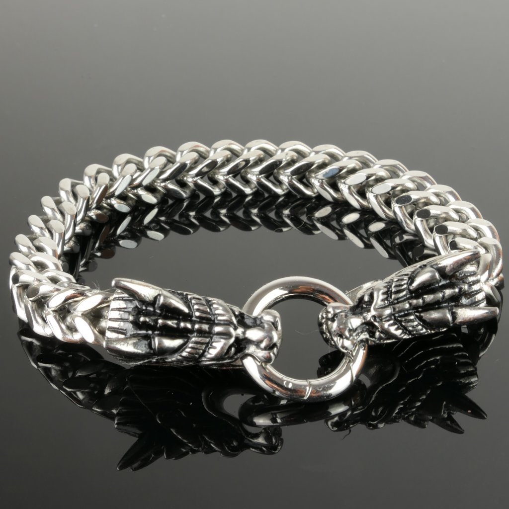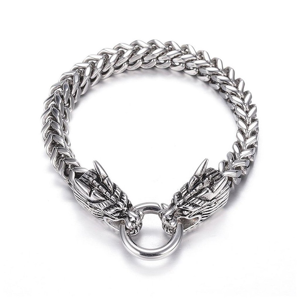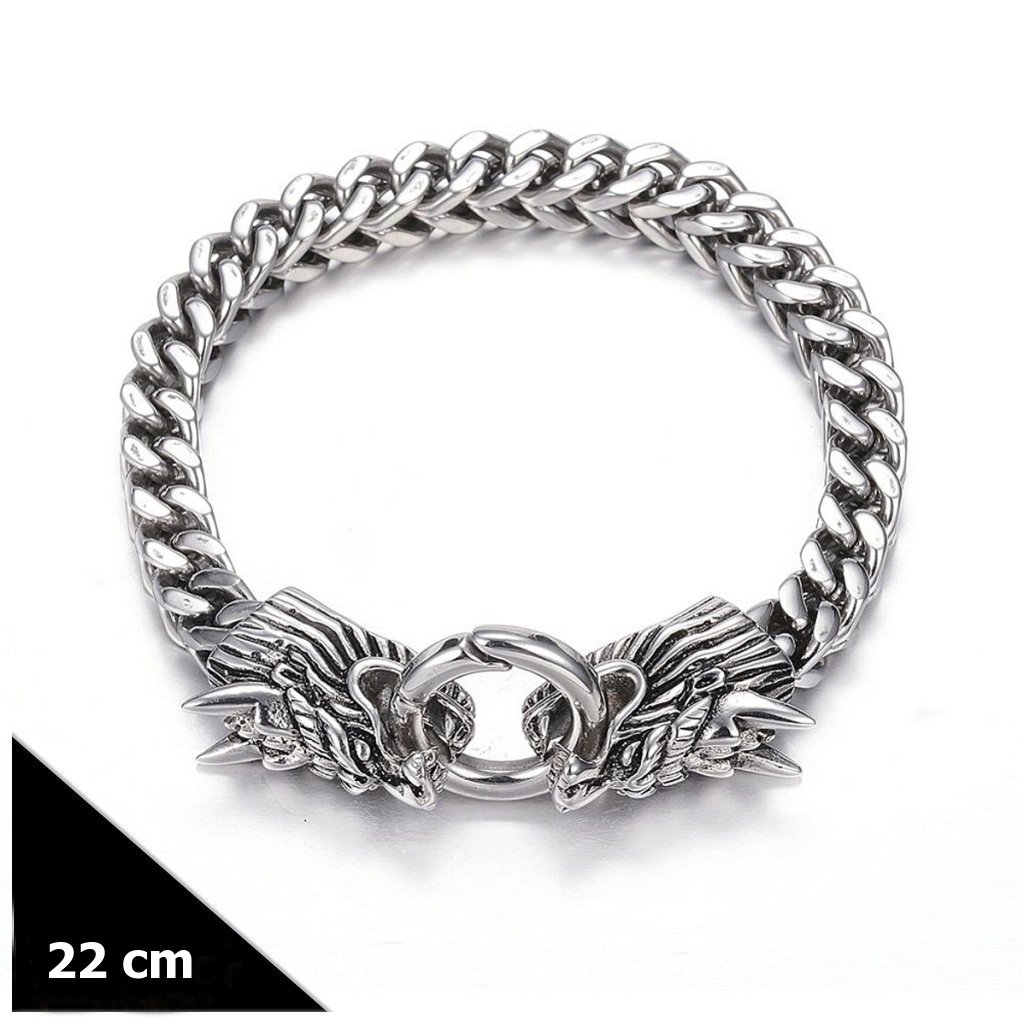 Vyrobený z prvotriednej chirurgickej ocele, náramok Draconis sa vyznačuje vynikajúcou odolnosťou a trvácnosťou, čo z neho robí dokonalý doplnok pre tých, ktorí vyžadujú spojenie kvality a nezameniteľného dizajnu. Jeho robustný dizajn a vyššia hmotnosť pridávajú na exkluzivite, zatiaľ čo hlavy drakov vyjadrujú symboliku sily a ochrany. Náramok je navyše hypoalergénny, čo ho robí vhodným pre ľudí s citlivou pokožkou alebo alergiami na bežné kovy. Draconis je ideálnym doplnkom pre tých, ktorí hľadajú niečo neprehliadnuteľné a plné symboliky.