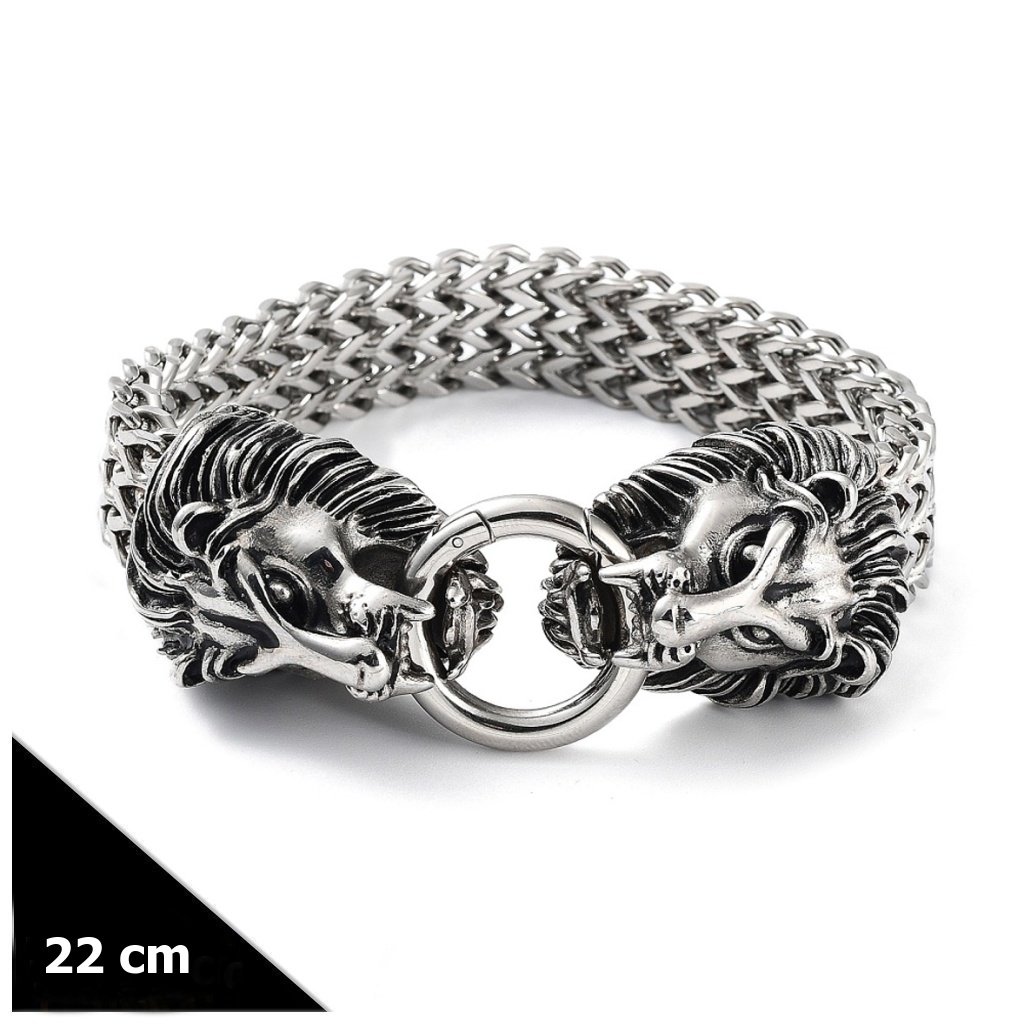 Krásny mohutny a luxusný náramok Leonidas z chirurgickej ocele, ktorý je stelesnením sily, odvahy a kráľovskej elegancie. Tento mohutný náramok je zdobený dvoma detailnými hlavami levov, ktoré sa stretávajú v strede, symbolizujúc súdržnosť a neporaziteľnosť. Vyrobený z prvotriednej chirurgickej ocele, náramok vyniká svojou odolnosťou a dlhodobou životnosťou.