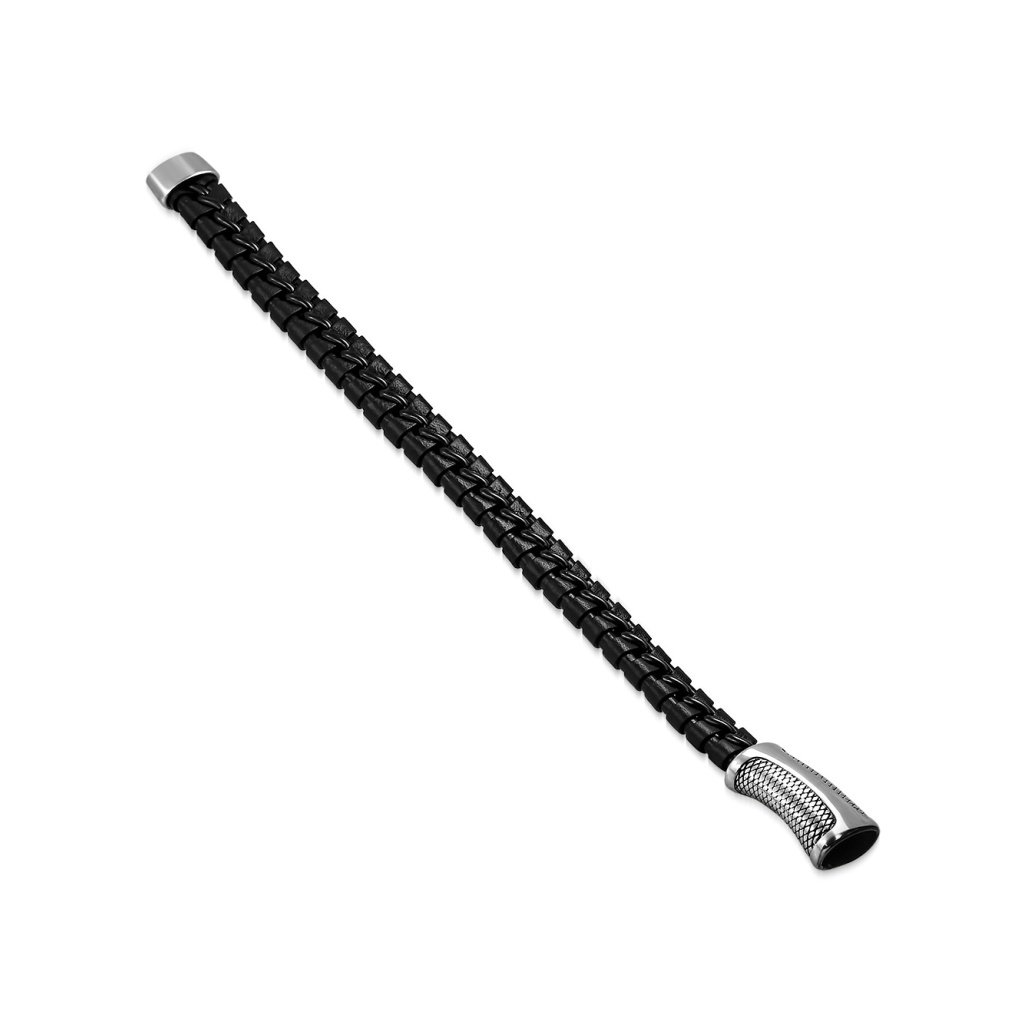 Pánsky náramok z eko kože v kombinácií s chirurgickou oceľou. Náramok je vyrobený z eko kože, v ktorej je stredom vpletená chirurgická oceľ. To robí náramok veľmi zaujímavým doplnkom pre pánov. Zapínanie náramku je ozdobné a potiahnuté tmavou patinou. Je magnetické, čo predstavuje komfort pri nosení náramku. Materiál šperku je eko koža, ktorá je veľmi príjemná na nosenie a kvalitná chirurgická oceľ. Tá je pevná a odolná, nekoroduje ani nečerná. Je antialergická, a preto je náramok vhodný na bežné každodenné nosenie.
