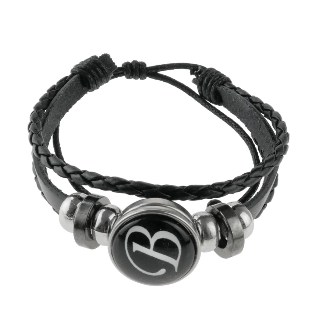 Zaujímavý pánsky náramok z čiernej ako kože s písmenom B. Náramky a taktiež prívesky s písmenom sa dnes tešia veľkej popularite. Taktiež, ako koža je veľmi populárna. Tento štýlový náramok ma vďaka textilnej šnúrke nastaviteľnú potrebnú veľkosť. Náramok je zdobená oceľovými korálkami v striebornom prevedení. Kovové časti náramku sú z chirurgickej ocele.
