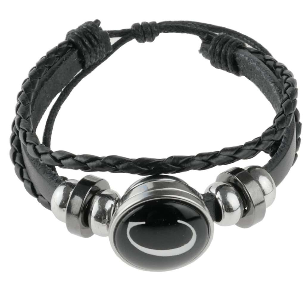 Zaujímavý pánsky náramok z čiernej ako kože s písmenom C. Náramky a taktiež prívesky s písmenom sa dnes tešia veľkej popularite. Taktiež, ako koža je veľmi populárna. Tento štýlový náramok ma vďaka textilnej šnúrke nastaviteľnú potrebnú veľkosť. Náramok je zdobená oceľovými korálkami v striebornom prevedení. Kovové časti náramku sú z chirurgickej ocele.