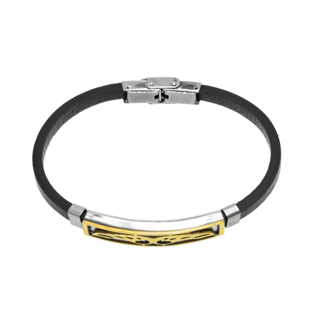 Náramok pánsky z eko kože pánsky čierny s ozdobnou platničkou