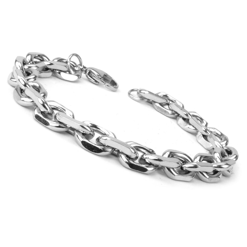 Pánsky náramok vyrobený z chirurgickej ocele. Náramok je pospájaný z väčších hrubých očiek, ktoré sú mierne zbrúsené, čo vytvára drsný dojem. Tento šperk je preto vhodný pre pánov, ktorí preferujú drsnejší štýl šperkov. Náramok ľahko doladíte retiazkou z ocele. Šperky z chirurgickej ocele sú veľmi pevné a odolné. Nepotrebujú žiadnu špeciálnu starostlivosť, a aj napriek tomu si zachovávajú svoj lesk a tvar.