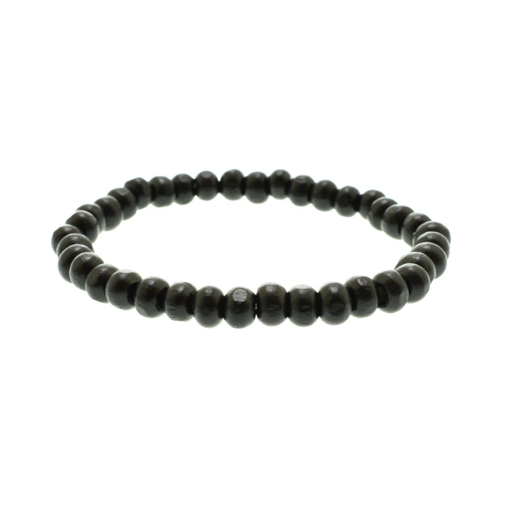 Štvrtý náramok je vyrobený z drevených guličiek v čiernej farbe.