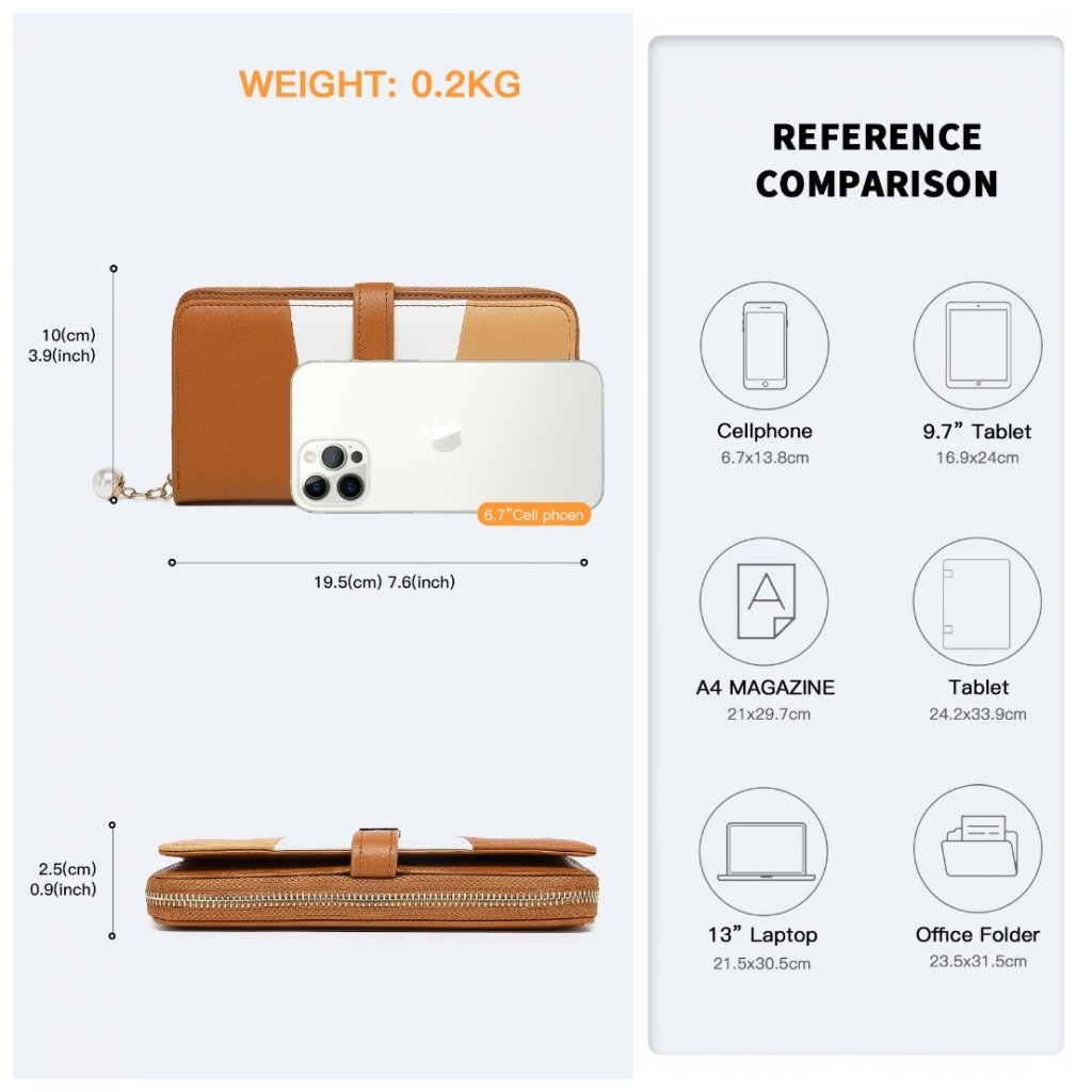 S rozmermi 10 cm na výšku, 19,5 cm na šírku a 3 cm na hĺbku je dostatočne veľká na usporiadanie mincí, papierovej hotovosti a kariet. Zips a cvok umožňujú jednoduchý prístup k obsahu, a priehradky na karty vám umožnia udržiavať svoje platobné a členské karty dobre zorganizované.
