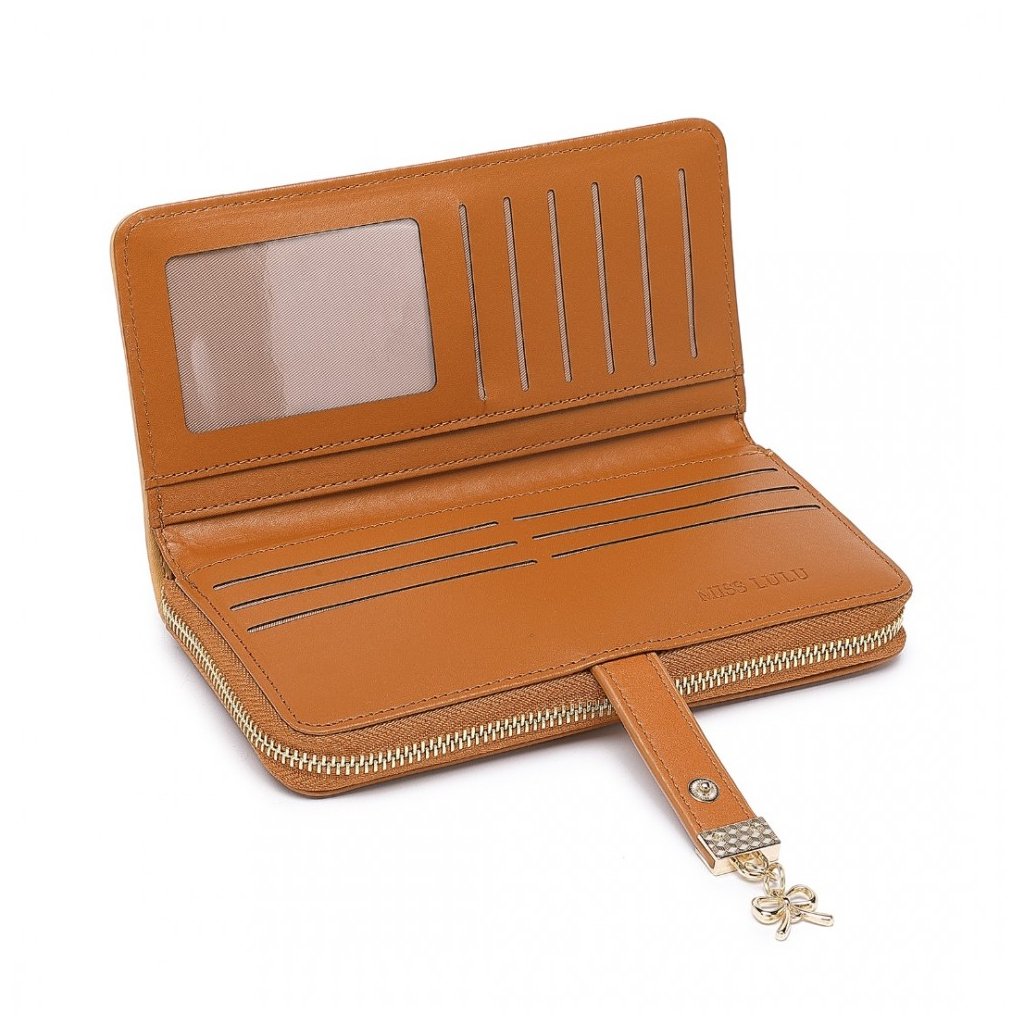 Vyrobená je z hladkej PU kože. Peňaženka poskytuje nielen pekný vzhľad, ale aj príjemný dotyk. Zapínací mechanizmus je zdobený zlatou mašličkou a teda pridáva k celkovému dizajnu šmrnc a štýl.