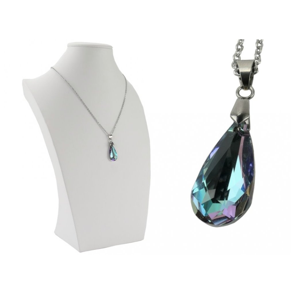 Krásny dámsky šperk retiazka s príveskom Made With Swarovski. Prívesok je v tvare kvapky Drop Crystal v modrej farbe. Bermuda Blue. Krásny a dokonalý výbrus prívesku hýri mnohými farbami modrými farbami, ktoré určite očaria každého. Elegatný šperk, ktorý je vhodný pre všetky dámy na rôzne príležitosti. Retiazka aj zves sú vyrobené z kvalitnej chirurgickej ocele, ktorá zaručuje Vášmu šperku dlhú životnosť, pretože oceľ nekoroduje ani nečerná a je vhodná na bežné každodenné nosenie. Ak Vám nevyhovuje základná dĺžka retiazky, pri tomto produkte si viete zvoliť Vami požadovanú dĺžku retiazky.