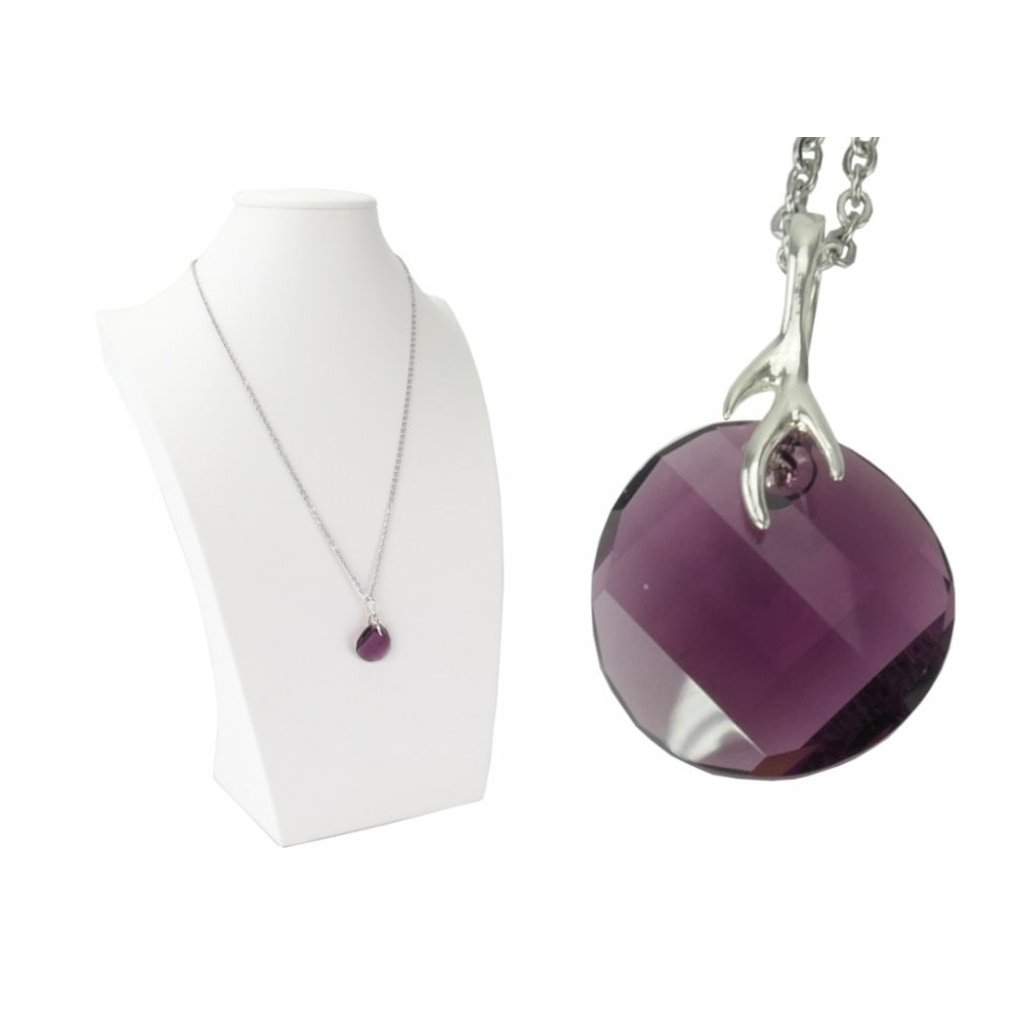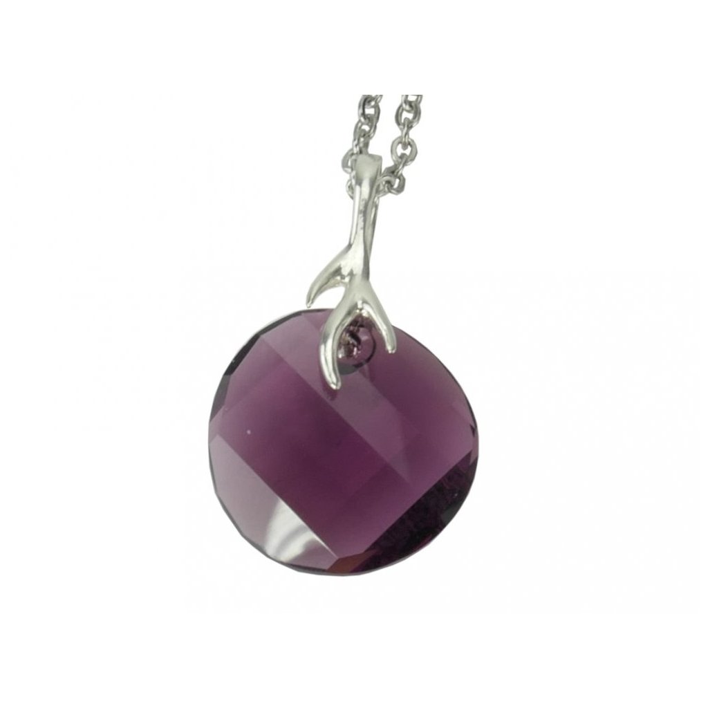 Dámska retiazka s krásnym príveskom Made With Swarovski. Prívesok má okrúhly tvar, ktorý je jemne zatočený, tzv. Twist. Krásny výbrus prívesku je vo fialovej farbe Amethyst. Trblietavé odlesky sú pri šperkoch Made with Swarovski samozrejmosťou. Tento šperk je vhodný pre všetky ženy bez rozdielu veku a je vhodný na bežné každodenné nosenie. Materiál retiazky je kvalitná chirurgická oceľ, ktorá nekoroduje ani nečerná, je hypoalergénna. Pri tomto šperku si viete zvoliť dĺžku retiazky podľa vlastnej potreby.