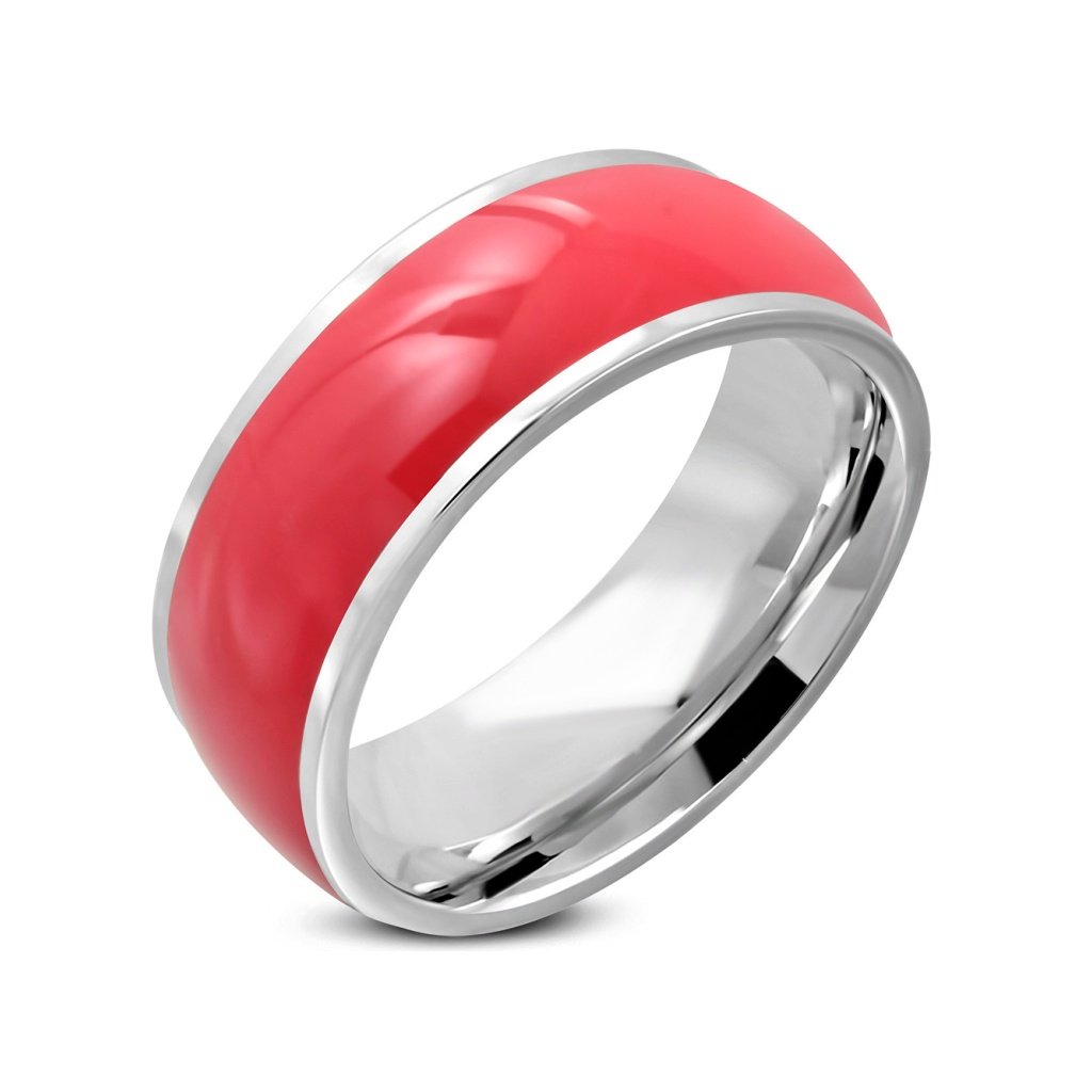 Prsteň obrúčka zdobená ružovým smaltom z chirurgickej ocele