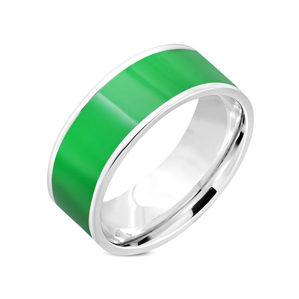 Prsteň obrúčka zdobená zeleným smaltom z chirurgickej ocele