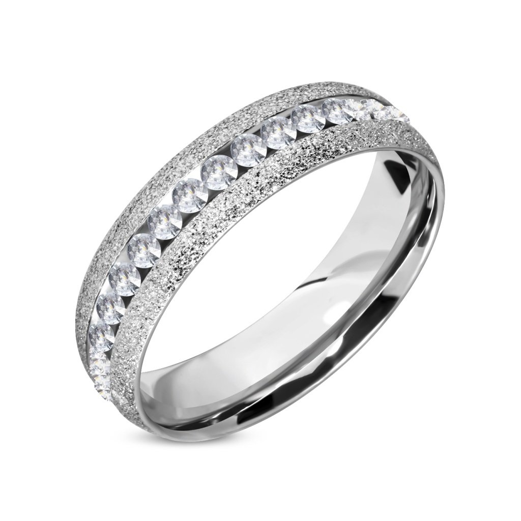 Prsteň obrúčka z chirurgickej ocele s povrchovou úpravou Stardust zdobený čírymi očkami