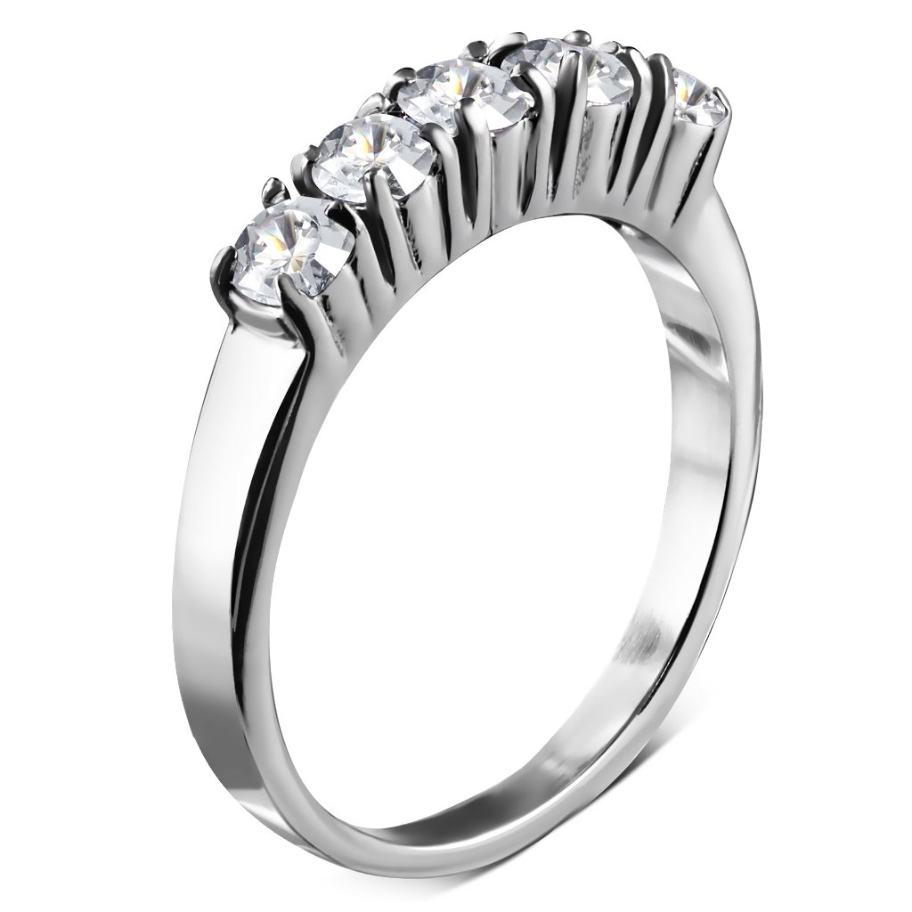 Prsteň z chirurgickej ocele zdobenými piatimi čírymi očkami z kubického zirkónu