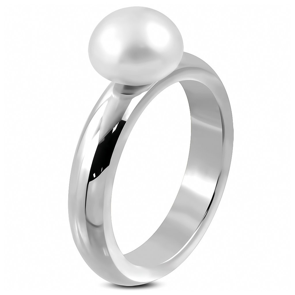 Prsteň z chirurgickej ocele doplnený pravou riečnou perlou bielej farby. Šperky z chirurgickej ocele sú veľmi obľúbené, pretože oceľ nekoroduje ani nečerná. Prstene z chirurgickej ocele sú vhodné na bežné každodenné nosenie, pretože sú antialergické.