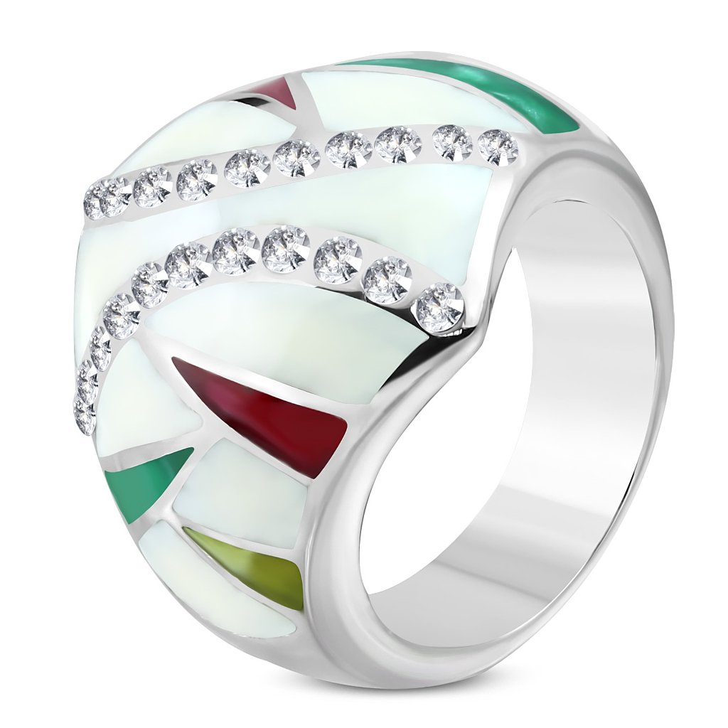 Prsteň so smaltom a kamienkami + darčeková krabička zadarmo