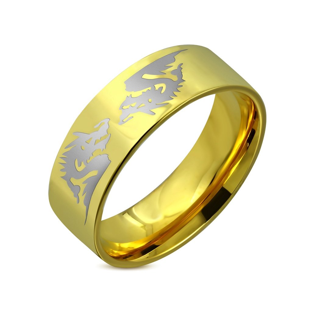 Prsteň obrúčka z chirurgickej ocele v zlatom prevedení zdobený dvomi drakmi