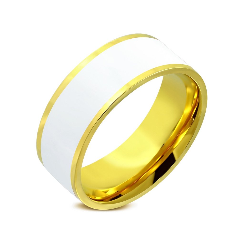 Prsteň obrúčka zlatá zdobený bielym smaltom z chirurgickej ocele