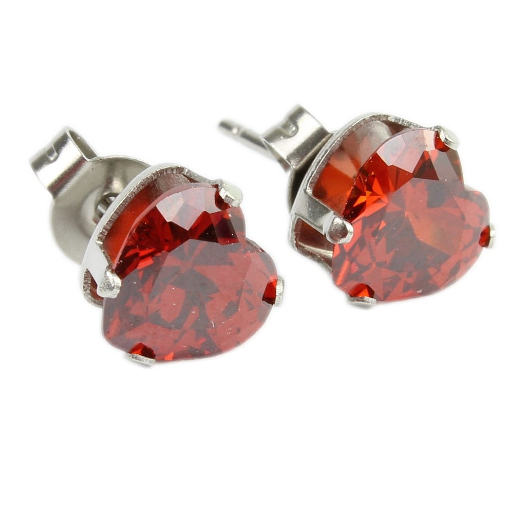 Retiazka s náušnicami z chirurgickej ocele v tvare srdca červenej farby z kubického zirkónu