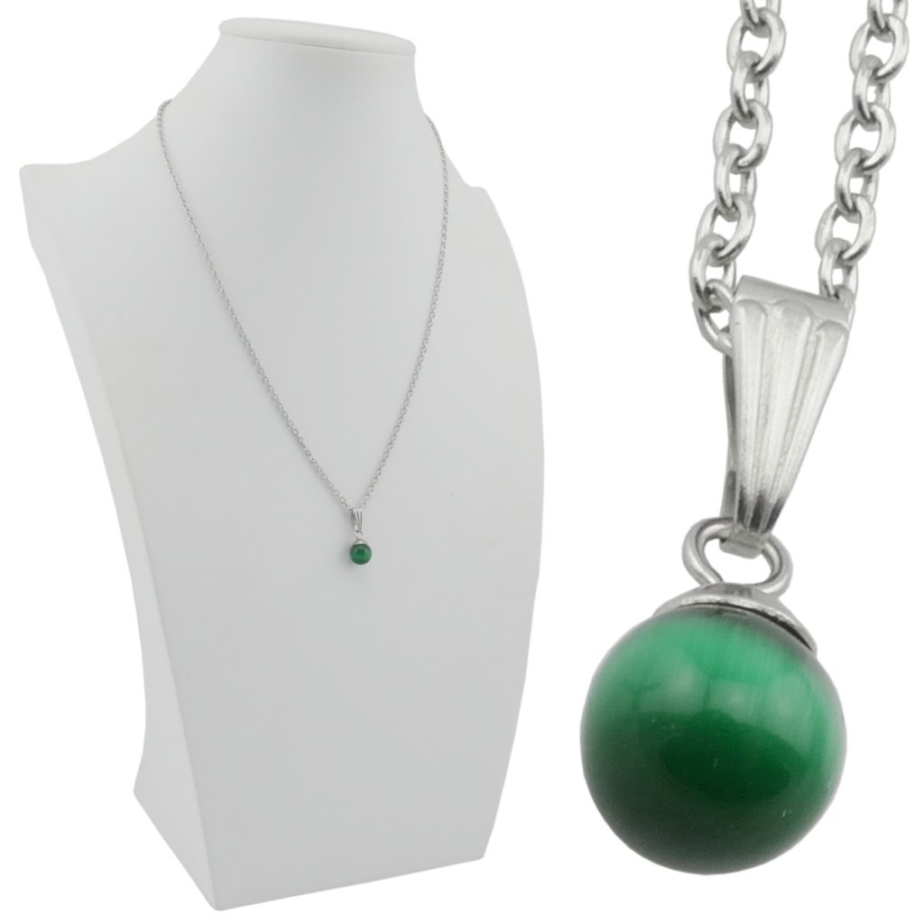 Retiazka z chirurgickej ocele s príveskom korálka z mačacieho oka v zelenom prevedení. Korálky z mačacieho oka majú krásny lesk a pri dopade svetla vytvárajú krásne odlesky, ktoré upútajú každé oko. Mačacie oko sa často zamieňa za polodrahokam Tigrie oko predovšetkým v zelenejfarbe nakoľko je mu veľmi podobný. Šperk je vhodný na bežné každodenné nosenie a pôsobý veľmi jemne a romanticky . Retiazka a všetky kovové časti sú z kvalitnej chirurgickej ocele v striebornom prevedení. Chirurgická oceľ nečerná a nekoroduje.
