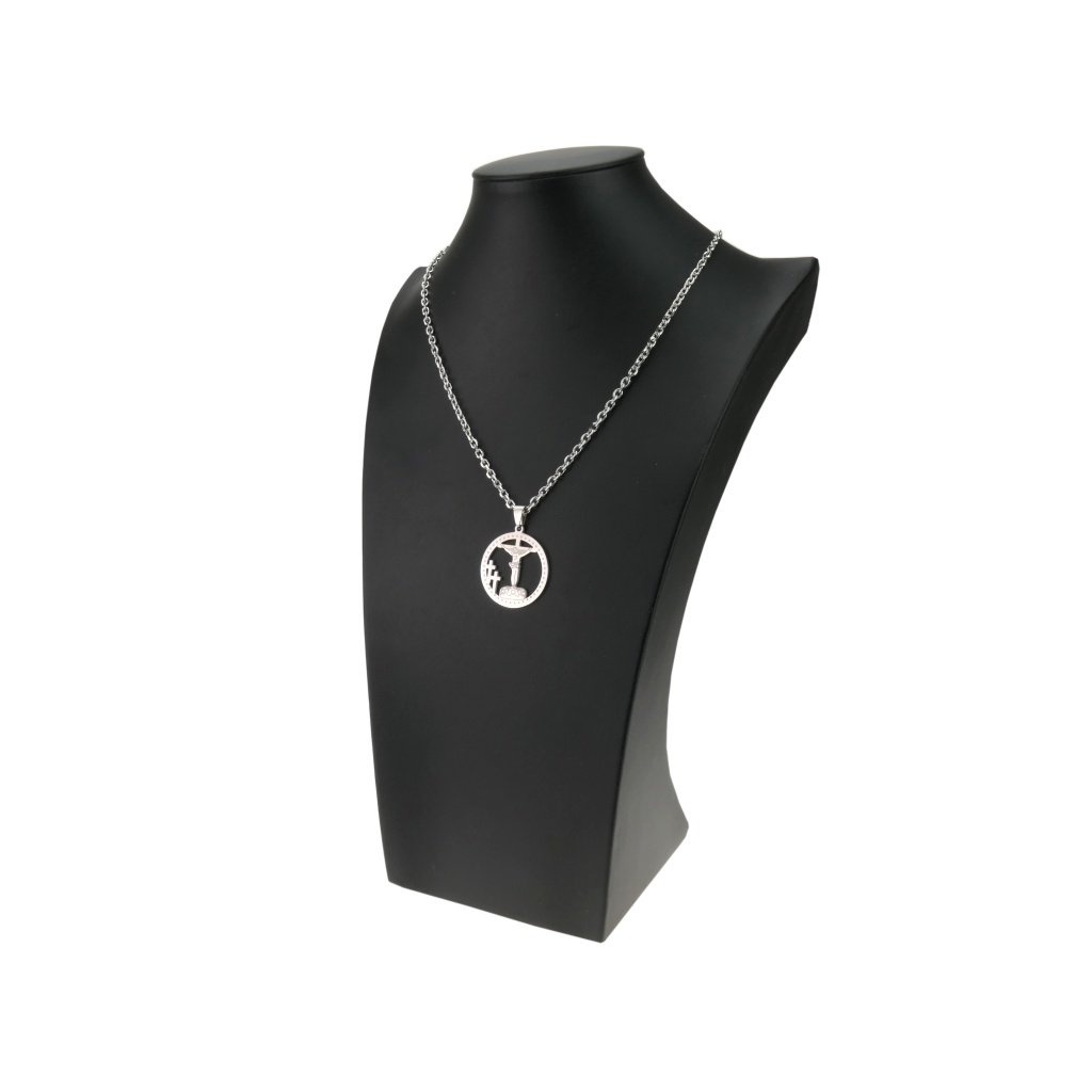 Retiazka s okrúhlym príveskom v striebornej farbe s Ježišom Kristom z ocele