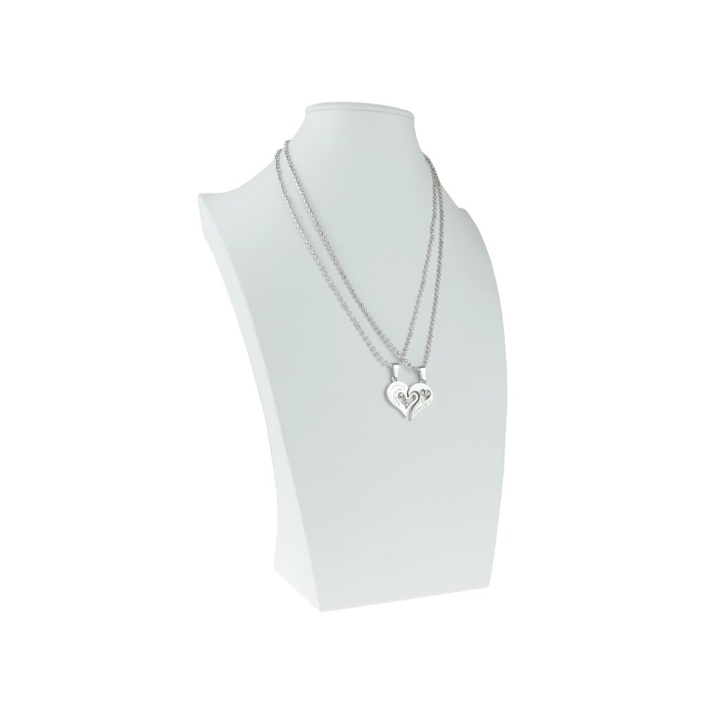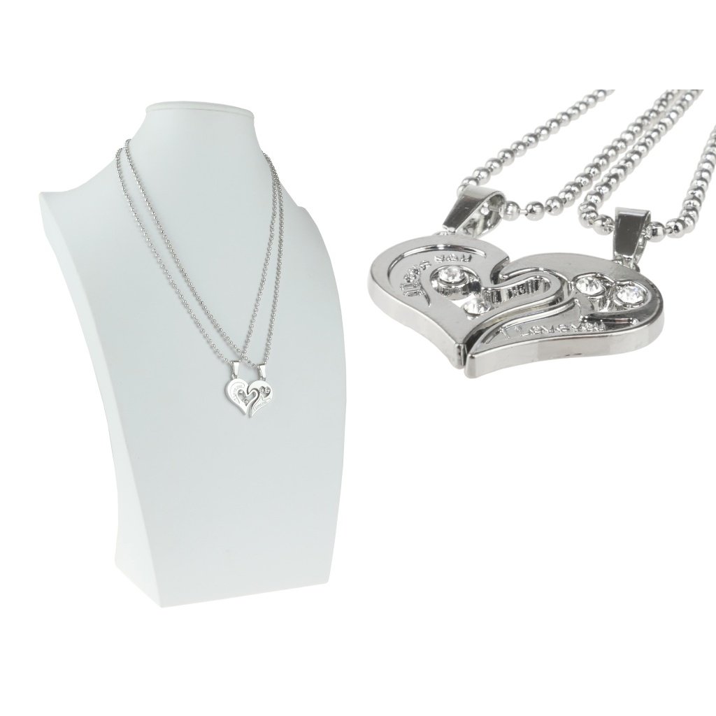 Romantická retiazka a prívesok, ktorá sa skladá pozostáva z dvoch polovíc srdca spolu vytvárajú jedno veľké srdiečko. Tento šperk z ktorého jeden môžete darovať svojej milovanej osobe. Polovice srdiečka sú zdobené dvomi jemnými kamienkami z kubického zirkónu. Retiazka aj prívesok sú vyrobené z kvalitnej chirurgickej ocele. Oceľové šperky sú vhodné na bežné každodenné nosenie, pretože oceľ nekoroduje, nečerná a je hypoalergénna. Šperky z chirurgickej ocele sa čoraz viac tešia svojej obľube vďaka výhodám, ktoré chirurgická oceľ ponúka.
