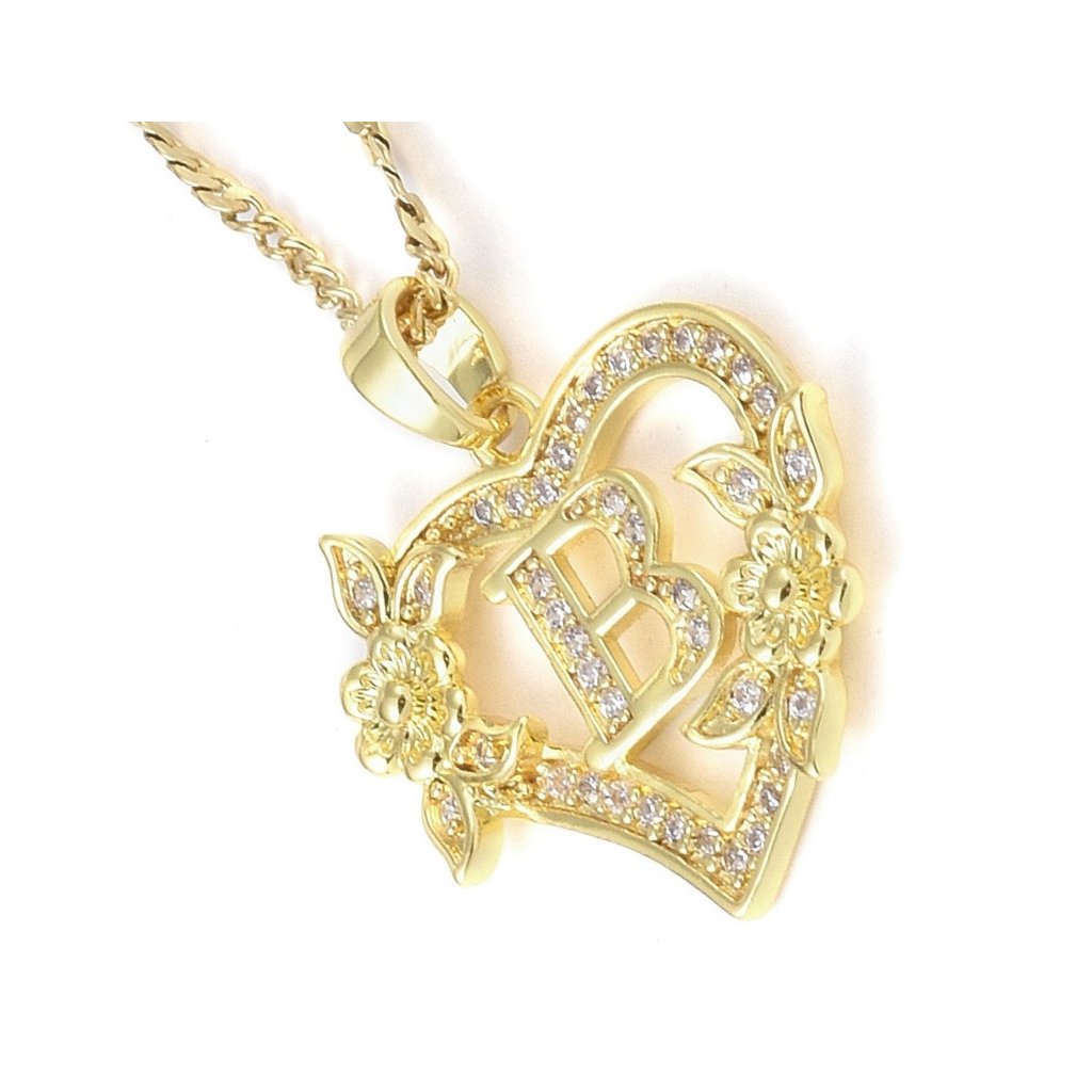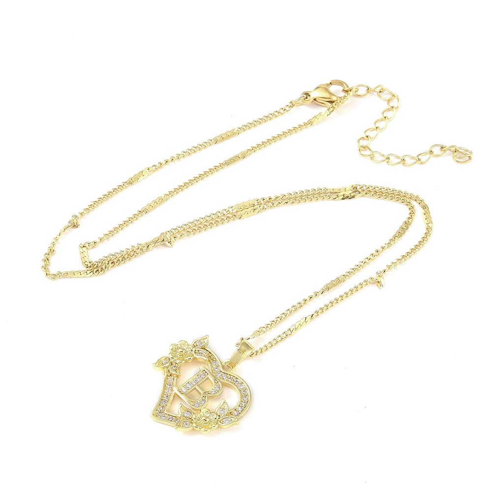 Retiazka s príveskom 'B' v zlatom srdiečku s kamienkami + darčeková krabička zadarmo