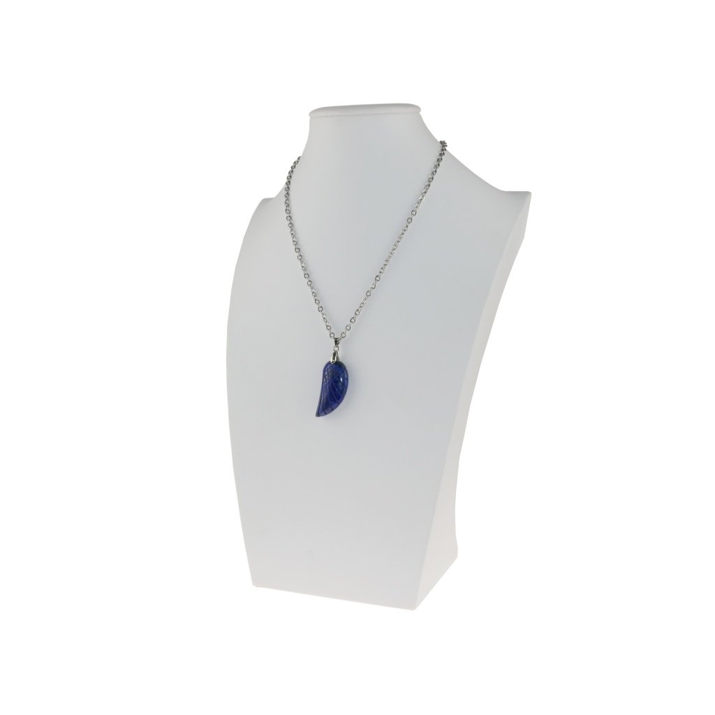 Nádherná dámska retiazka s príveskom. Prívesok Anjelské krídlo z polodrahokamu Lapis lazuli v jeho typickej modrej farbe farbe. Anjelské krídla majú duchovní charakter a poskytujú ochranu, ktorú nad nami niekto drží. Tento symbol šperku je vhodný pre ľudí so stresom. Anjelské krídla predstavujú harmóniu. Polodrahokam Lapiz lazuli je považovaní za kameň symbolizujúci priateľstvo a oddanosť. Tento šperk je naozaj krásny a vhodný na každodenné nosenie. Taktiež je vhodný pre všetky vekové skupiny a tým pádom ak hľadáte darček isto s výberom tejto retiazky s príveskom nič nepokazíte.