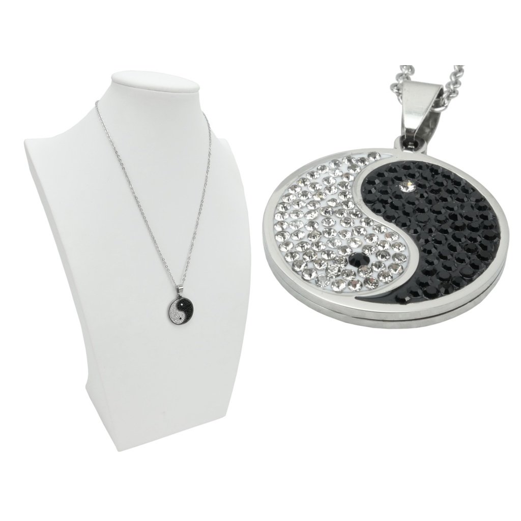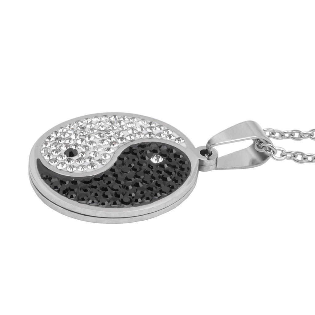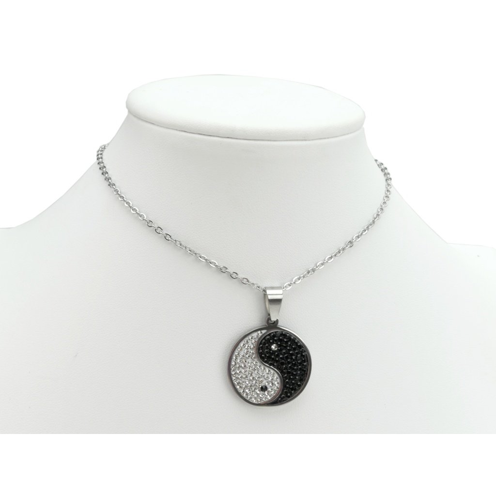 Retiazka s príveskom, znázornením čínskym znakom Jin Jang.Prívesok je ozdobený trblietavými očkami s zirkónmi. Jin Jang predstavuje spojenie dvoch opačných síl, ako ženská a mužská, alebo svetlo a tma. Prívesok je vhodný pre dámy ale aj pre pánov. Materiál retiazky aj prívesku je chirurgická oceľ, ktorá mu zaručí dlhú životnosť. Nekoroduje, nečerná a vyznačuje sa svojou pevnosťou a odolnosťou. Je vhodná na bežné každodenné nosenie. Pri tomto šperku máte možnosť výberu dĺžky retiazky ak Vám nevyhovuje jej základná dĺžka.