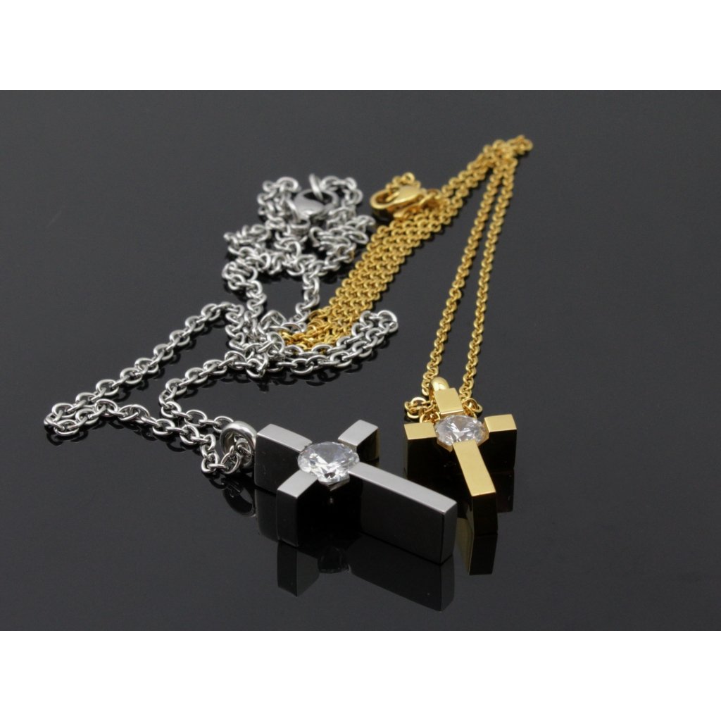 Prívesok kríž v zlatej aj striebornej farby sú z kvalitnej chirurgickej ocele a tak isto aj obe retiazky sú z kvalitnej chirurgickej ocele. Očko v strede kríža je brúsené a je z kubického zirkónu. Tento šperk Vám vydrží veľmi dlho nakoľko materiál chirurgická oceľ nekoroduje a nemení farbu.
