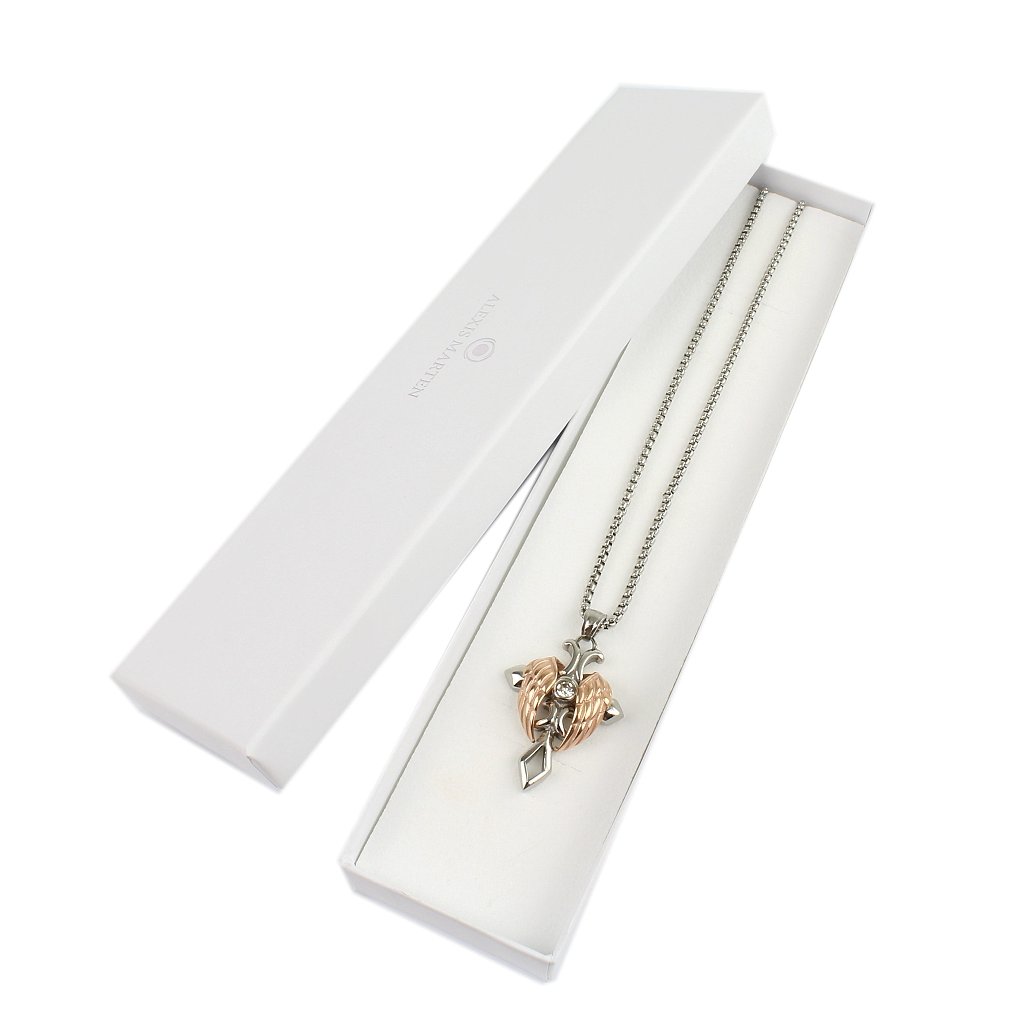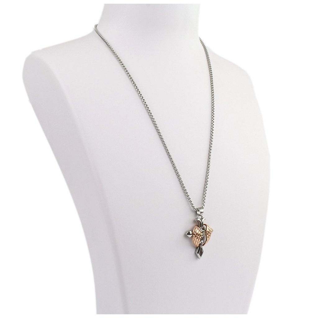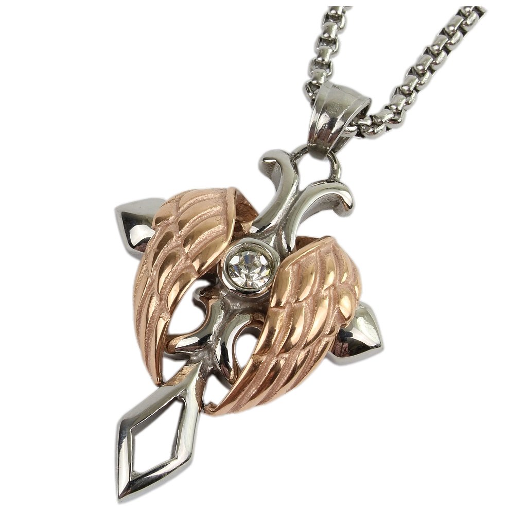 Vlastnosti a opis: Retiazka z titanovej ocele s príveskom kríž s krídlami v medenej farbe