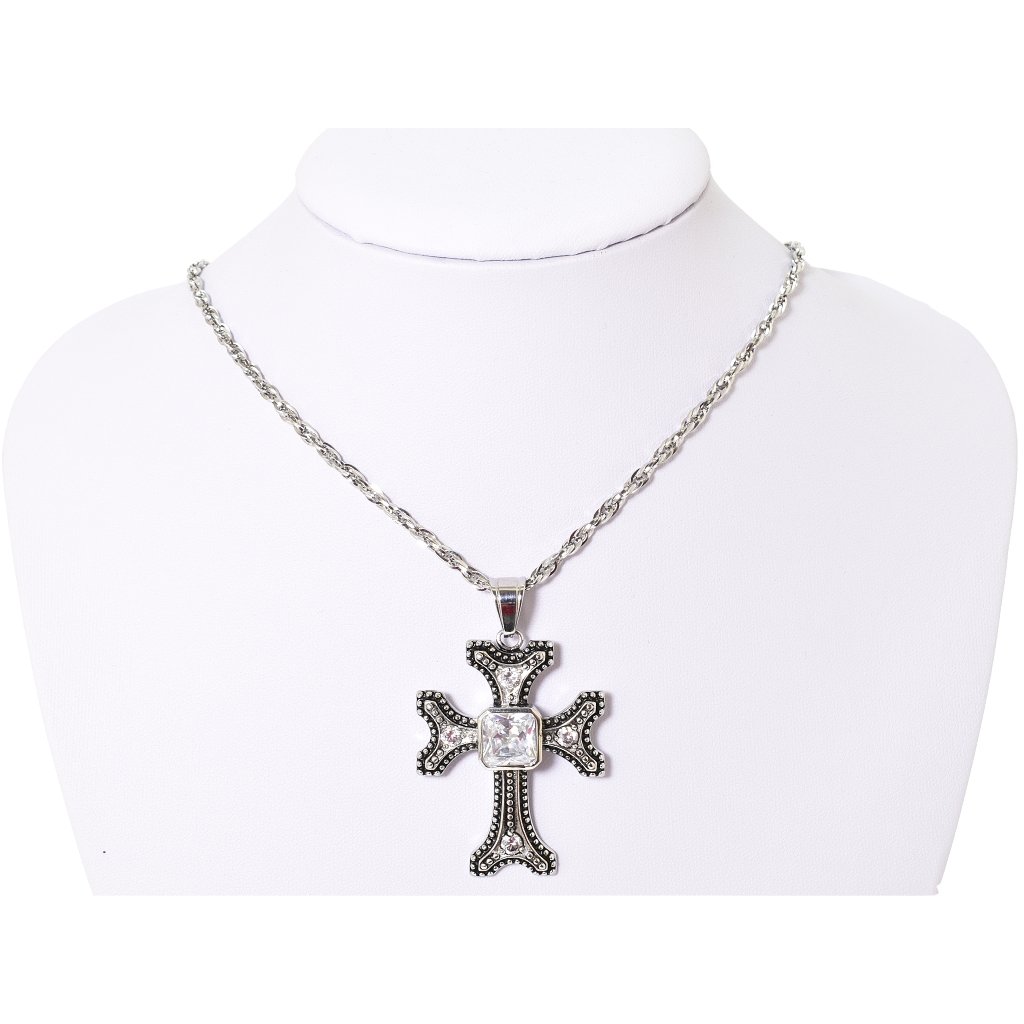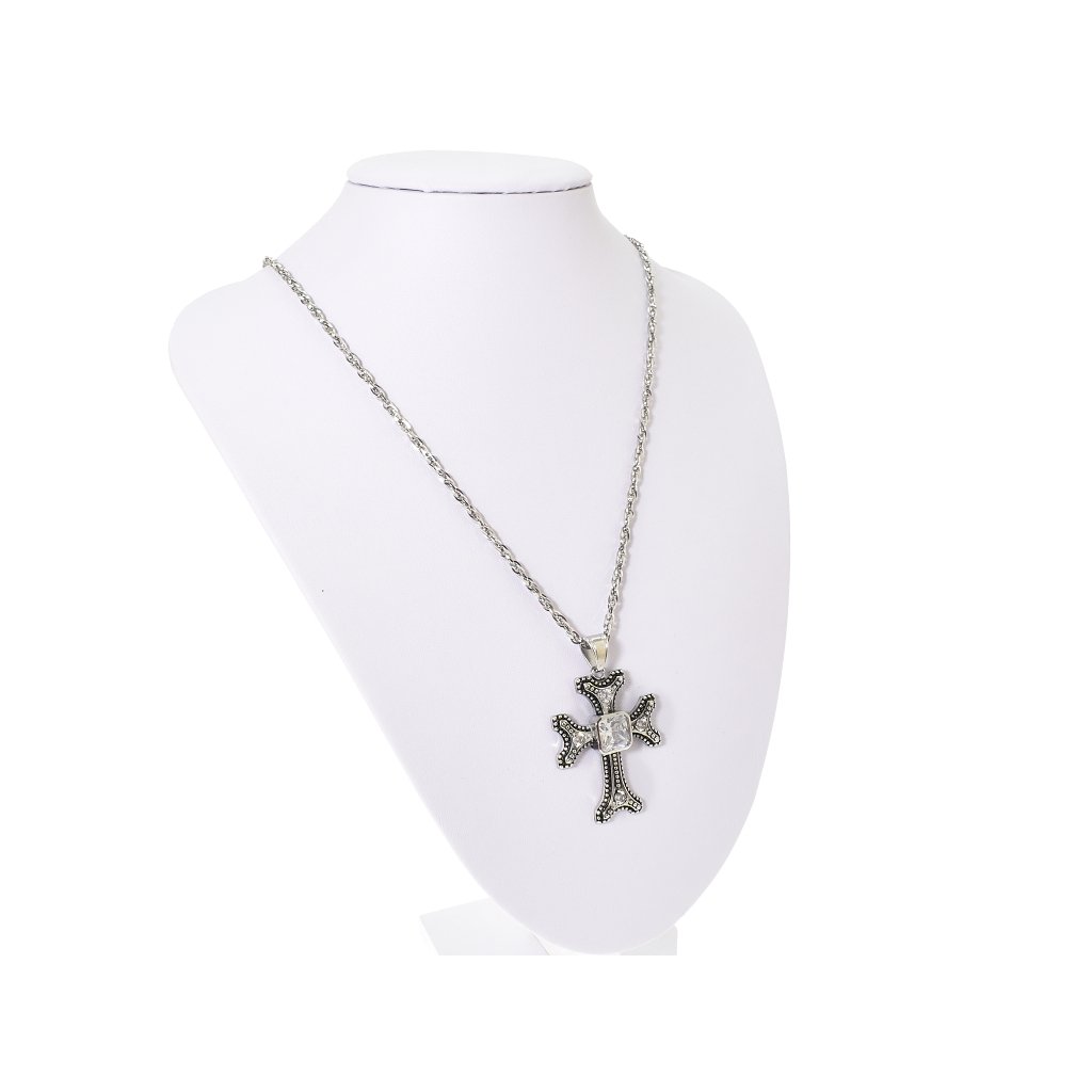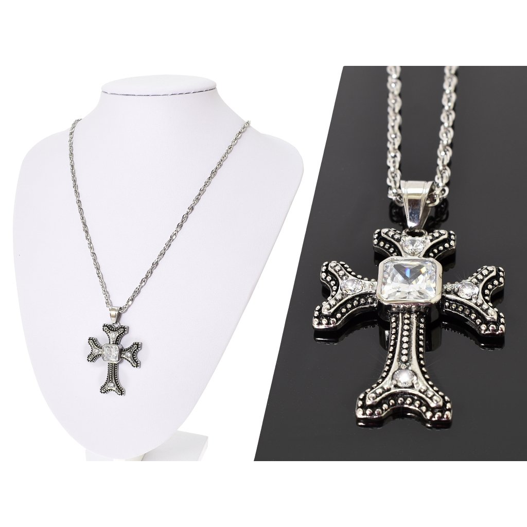 Krásna retiazka s príveskom kríž vhodná predovšetkým pre mužov ktorý majú radi mohutnejšie prívesky. V strede kríža je vsadené jedno väčšie očko v tvare štvorca z kubického zirkónu ktoré pri dopade svetla vytvára krásne odlesky. V krížiku sú ešte štyri malé očká z kubického zirkónu. Retiazka k prívesku sa dá nosiť aj osobitne, čiže tento šperk je 2 v 1.
