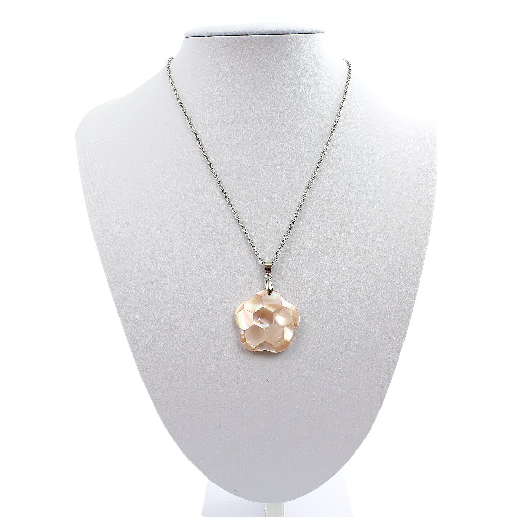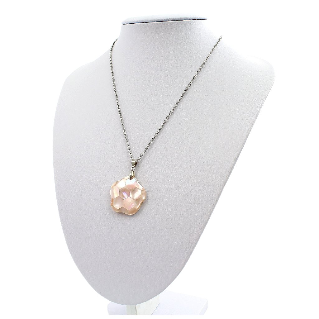 Retiazka s chirurgickej ocele a prívesok kvetu z perlete pôsobí veľmi žensky a romanticky. Perleť vystihujú farby odtieňom krémovej bielej a béžovej s odleskmi jemnej ružovej fialovej a zelenej je to úplne dokonalá kombinácia jemných farieb a práve pre túto dokonalosť tento šperk symbolizuje ženskú krásu, zvodnosť ale taktiež rafinovanosť. Šperk z perlete sa používa aj, ako amulet ktorý ochraňuje nositeľa pred nehodami akého koľvek druhu a nešťastím. Pri tomto šperku si viete zvoliť dĺžku retiazky podľa vlastnej potreby.
