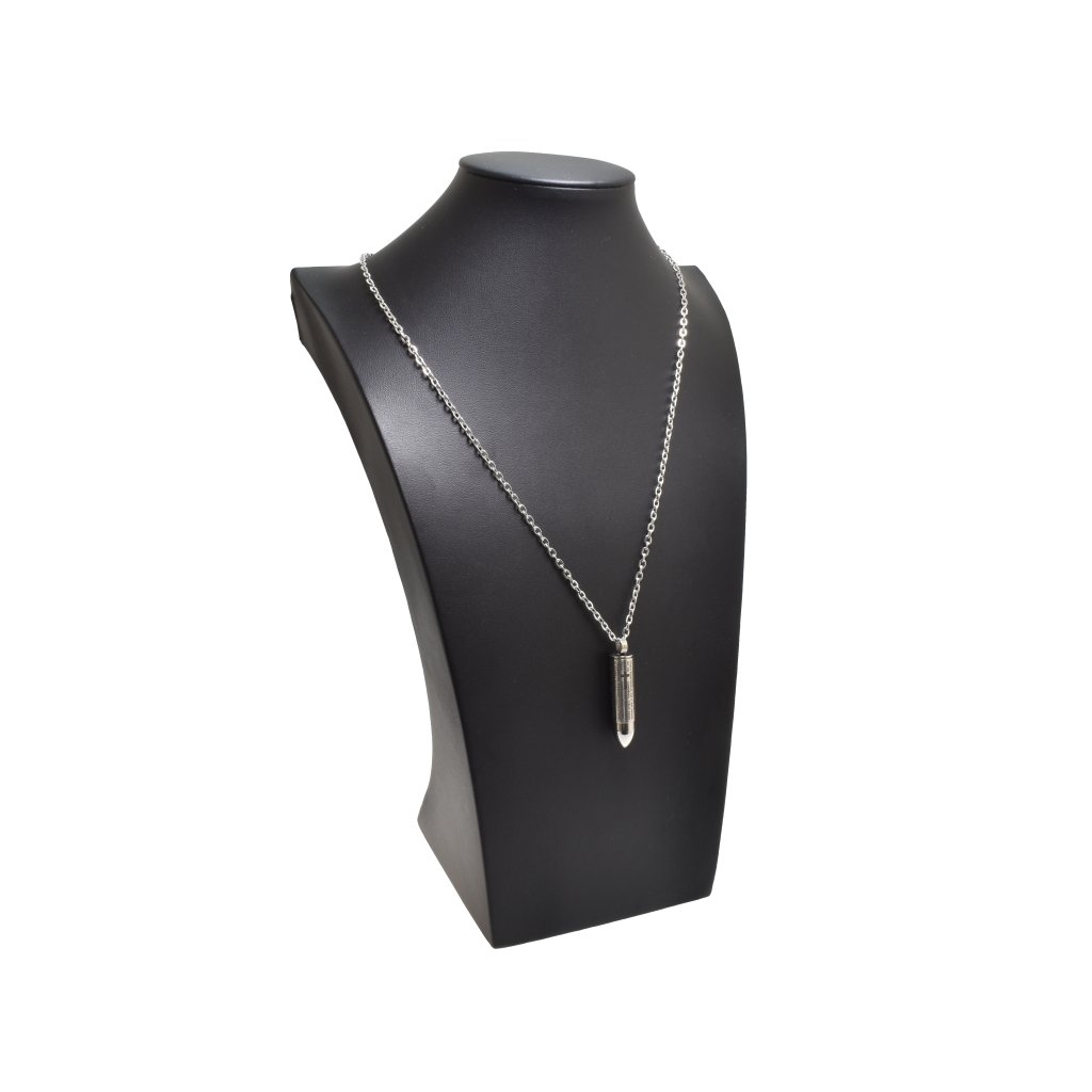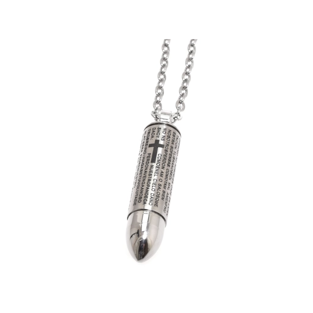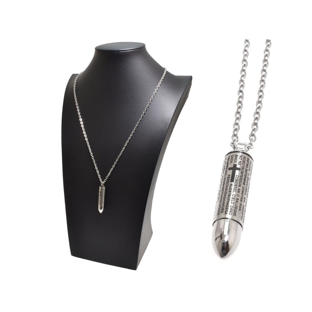 Retiazka so zaujímavým príveskom v tvare náboja v striebornej farbe. Tento prívesok je vhodný pre pánov, ktorí majú radi military štýl, ale aj pre ľudí vyhľadávajúcich šperky s náboženským motívom. Na náboji je kresťanský kríž spolu s modlitbou v španielskom jazyku. Retiazka s príveskom sú vyrobené z chirurgickej ocele, ktorá je vhodná na každodenne nosenie a nepotrebuje špeciálnu starostlivosť. Tento šperk je taktiež vhodný pre všetky vekové kategórie. Pri tomto produkte si viete vybrať dĺžku retiazky ak Vám nevyhovuje jej základná dĺžka.