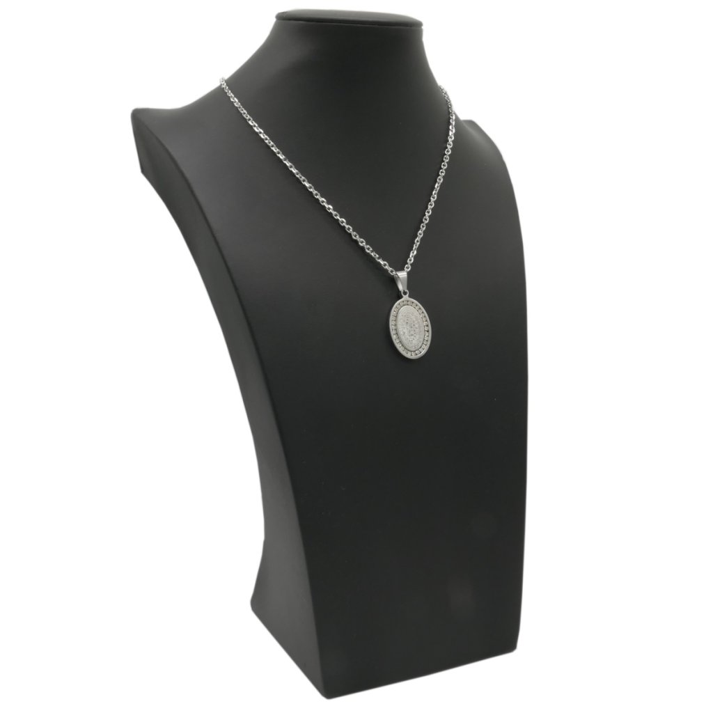 Tento nádherný prívesok Panny Márie, vyhotovený v striebornom prevedení, je dokonalým doplnkom pre každého, kto hľadá niečo štýlové a duchovné zároveň. Vyrobený z kvalitnej chirurgickej ocele, je odolný proti korózii, nehrdzavie a zachováva si svoj lesk aj po dlhšom nosení. Jemne zdobený trblietavými čírymi kamienkami po obvode , dodáva šperku eleganciu a žiaru.